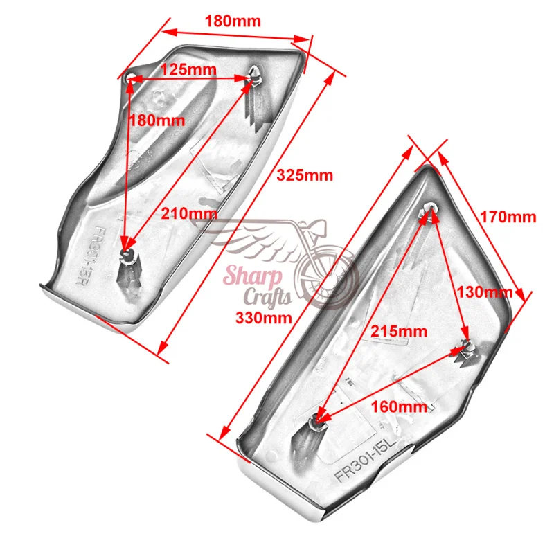 Подробное описание: Состояние на 100% абсолютно новый Цвет: хром/черный Количество: 1 комплект (слева и справа) Материал:АБС-пластик Приспособление: Для Honda VTX 1800 R/Retro, S/Speak, N/Neo, F & T/Tourer models 2002-2008