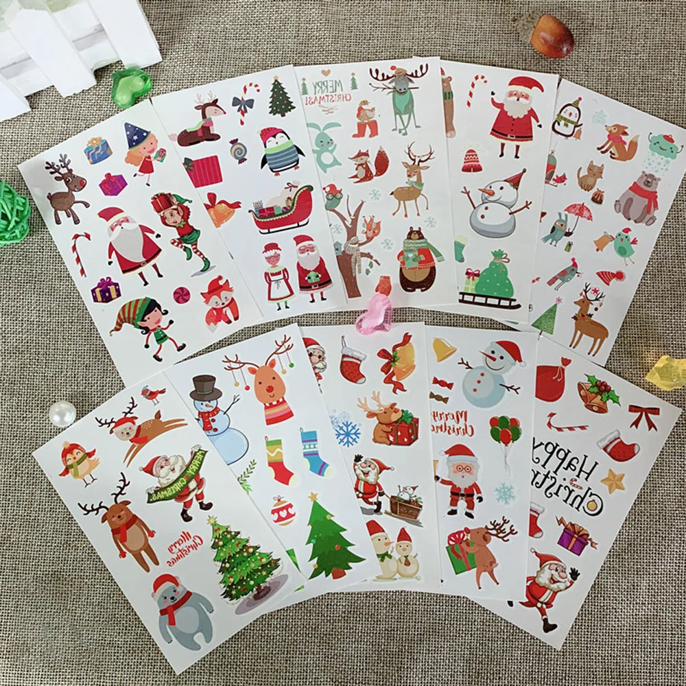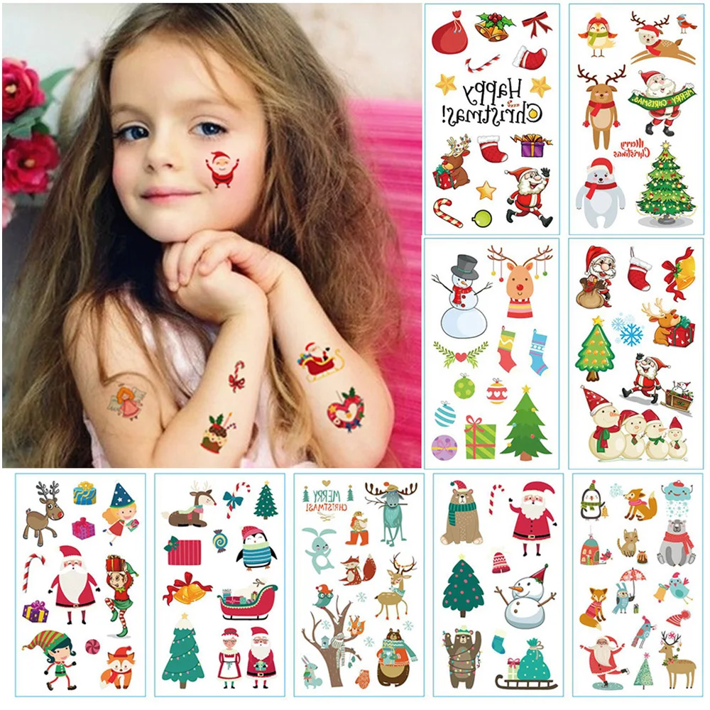 Лист наклейки имеет милые узоры Санта-Клауса, оленя, рождественской елки и т. д. он используется на ваших голой части тела, чтобы взять в качестве украшения, очень подходит для вечерние Рождества.