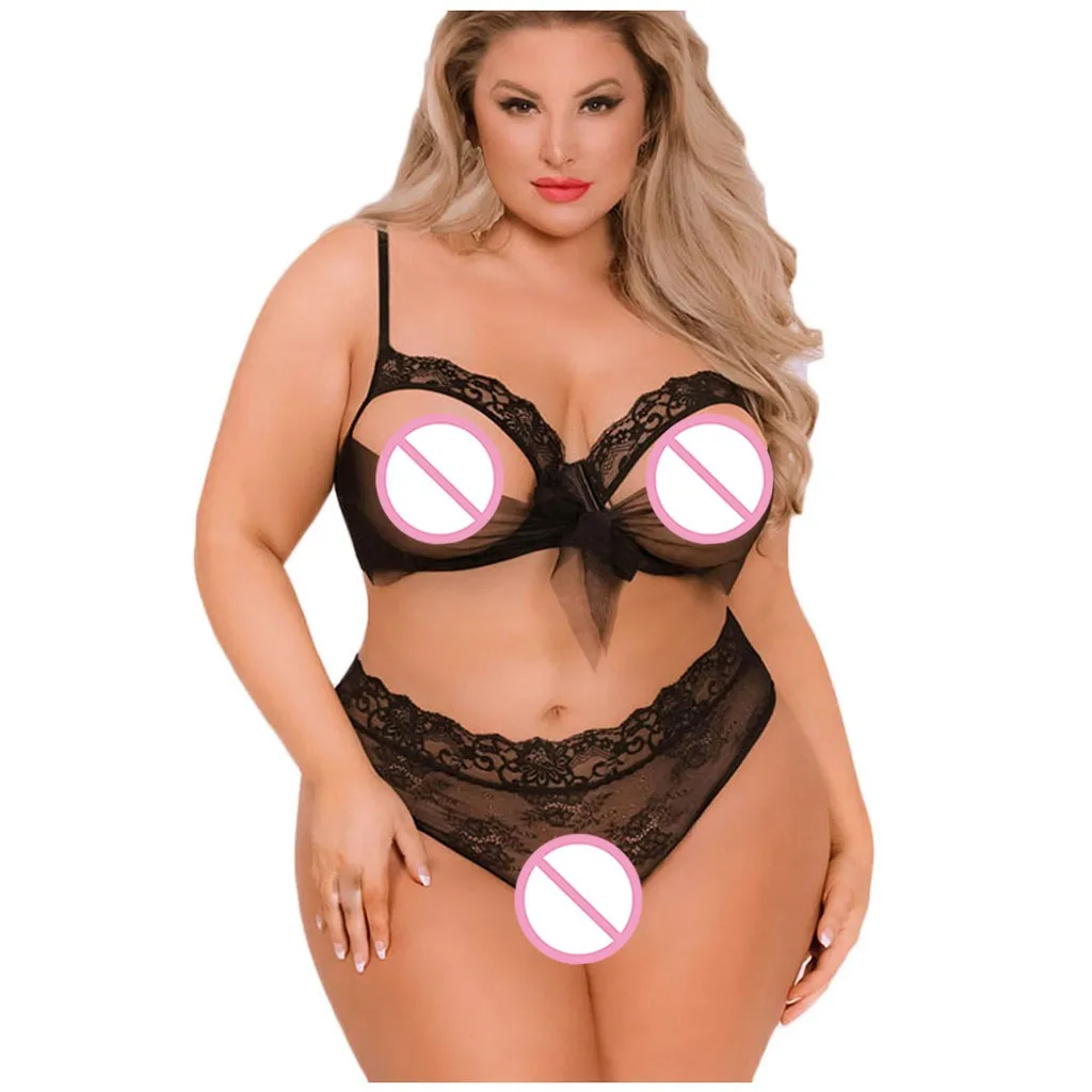 Женский сексуальный бюстгальтер с бантом + трусики, комплект нижнего белья, большие размеры