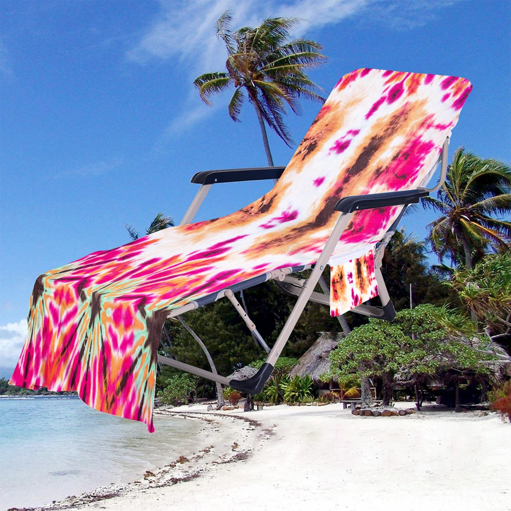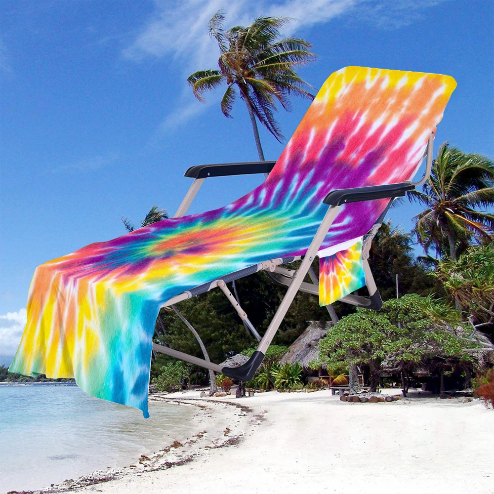 Цветной чехол для пляжного стула с принтом радуги, летний шезлонг для бассейна, полотенце из микрофибры, чехлы на стулья с карманом для хранения