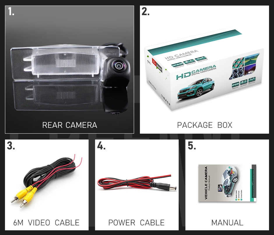 • Не нужны интерфейсы CANBUS или OBD, встроенный модуль треков заднего хода камеры, просто подключите питание.