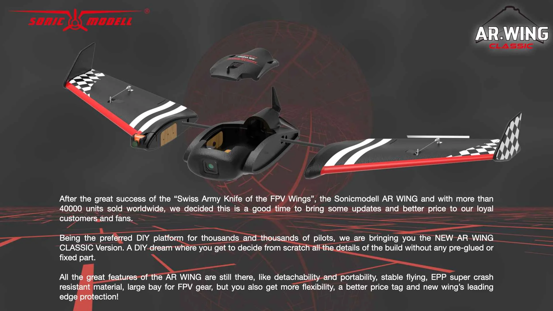 После большого успеха швейцарского армейского ножа крыльев FPV, крыла Sonicodell AR и с более чем 40000 единиц, продаваемых по всему миру, мы решили, что это подходящее время, чтобы предоставить некоторые обновления и лучшую цену нашим постоянным клиентам и поклонникам.