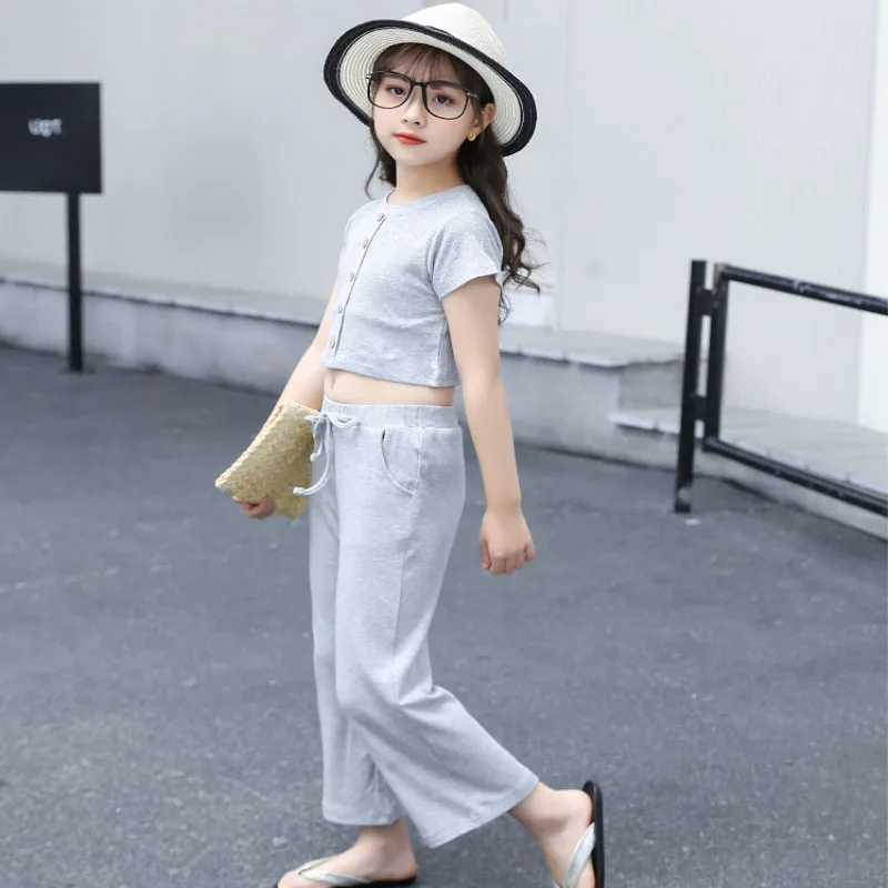 Одежда для девочек От 3 до 12 лет, летний модный костюм из двух предметов, Новый кардиган с короткими рукавами, пальто + брюки, качественная детская одежда
