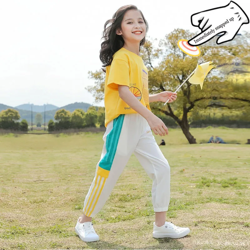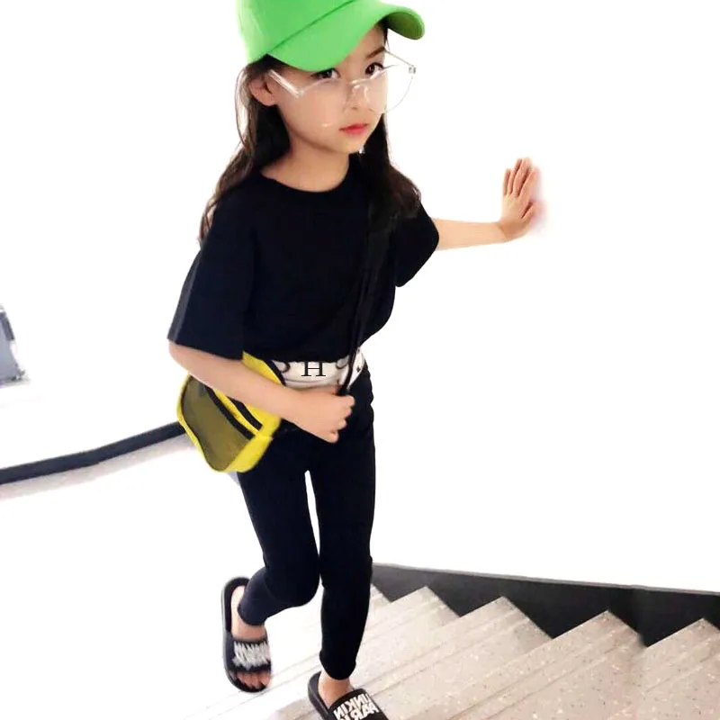 Одежда для девочек 2-8 лет, комплект из двух предметов, модная футболка с короткими рукавами и талией на талии + облегающие брюки стрейч, качественная детская одежда
