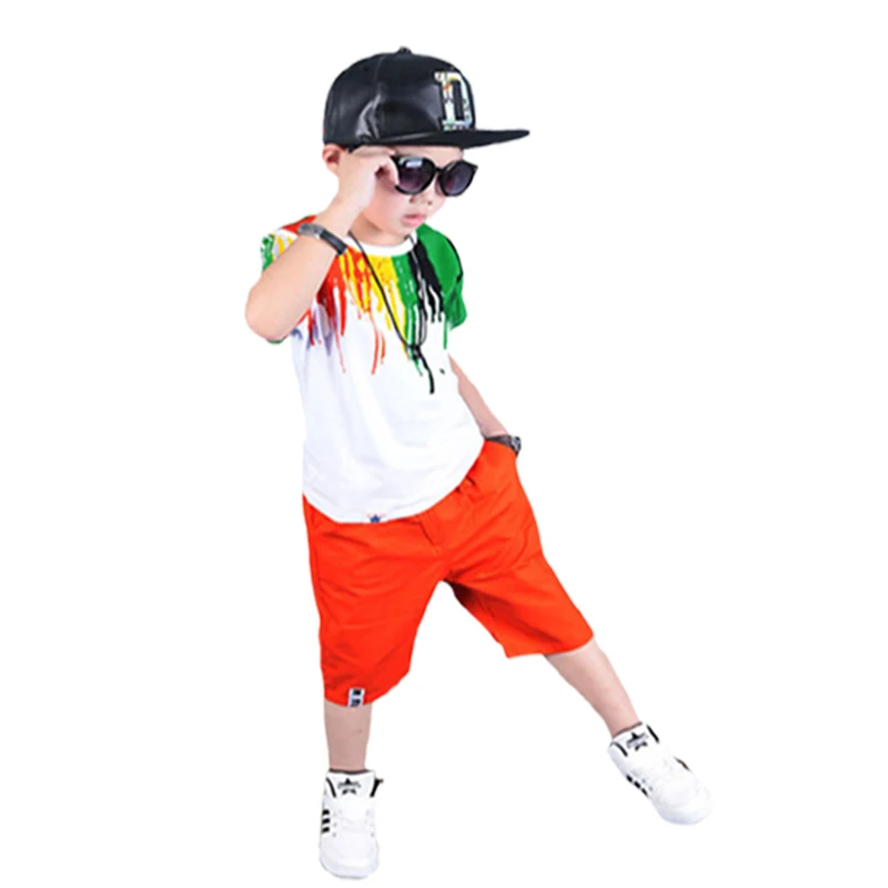 От 3 до 10 лет летний спортивный комплект из двух предметов для мальчиков, модная крашеная футболка с короткими рукавами, топ + брюки средней длины, качественная детская одежда