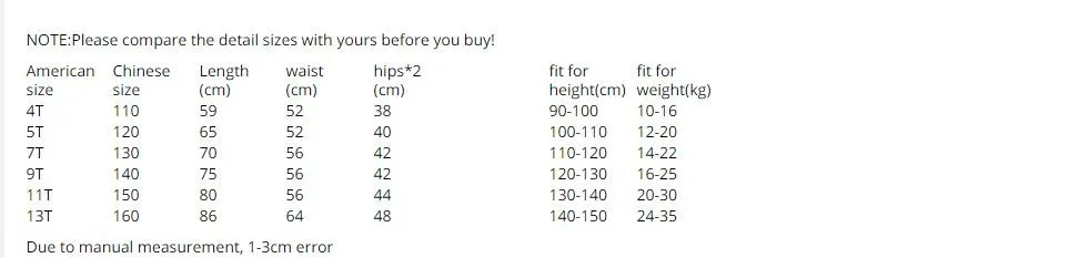 2. Пожалуйста, внимательно проверьте таблицу размеров перед покупкой товара.