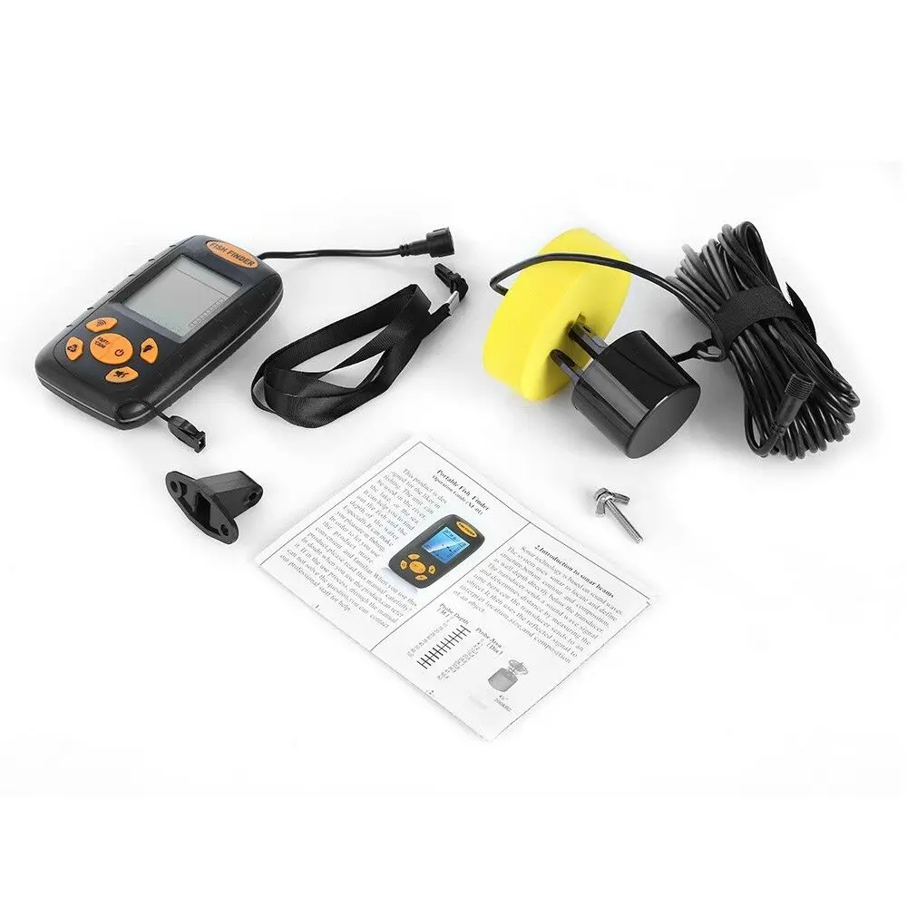Стиль: портативный Дисплей: TN / Anti-UV LCD Подсветка: Белый светодиодный Питание: 4 батарейки AAA (не входят в комплект) Единица измерения: фут/метр Угол луча датчика: 45 градусов Максимальный диапазон глубины: 328 футов (100 метров) Глубина Диапазон минимальный объем: 2 фута (0,6 м) Глубина исследования (м): 0,6 м-100 м Рабочая температура: -10 - 70 градусов по Цельсию Размер экрана (L×W) см: 4x4,3 Батарея в комплекте: нет Посылка Вес: 0,585 кг Посылка размеры размер упаковки (Д x Ш x В): 27x16,5x6 см Основные характеристики: -Отображение температуры и глубины воды, глубины и местоположения рыбы, детектора сорняков, детектора нижнего контура, чувствительности и прочности батареи. -Звуковая сигнализация для рыб оповещает вас о обнаружении рыбы. -Подсветка ЖК-дисплея для четкого чтения даже в ночное время или в пасмурную погоду. -Подходит для рыбалки на лодке и на льду. -Глубина считывания от 0,6 до 100 м -Прочный и водостойкий дизайн, прочный и удобный. -Компактный портативный блок легко поместится в ваш карман или ящик для снастей. -Может использоваться в океане, реке и озере, он показывает траву, камень, песок в море. Посылка: 1 * рыболокатор 1 * Круглый преобразователь с кабелем 25 футов 1 * Адаптер преобразователя 1 * нержавеющий болт 1 * гайка из нержавеющей стали 1 * шейный ремешок 1 * Руководство пользователя (на английском языке)