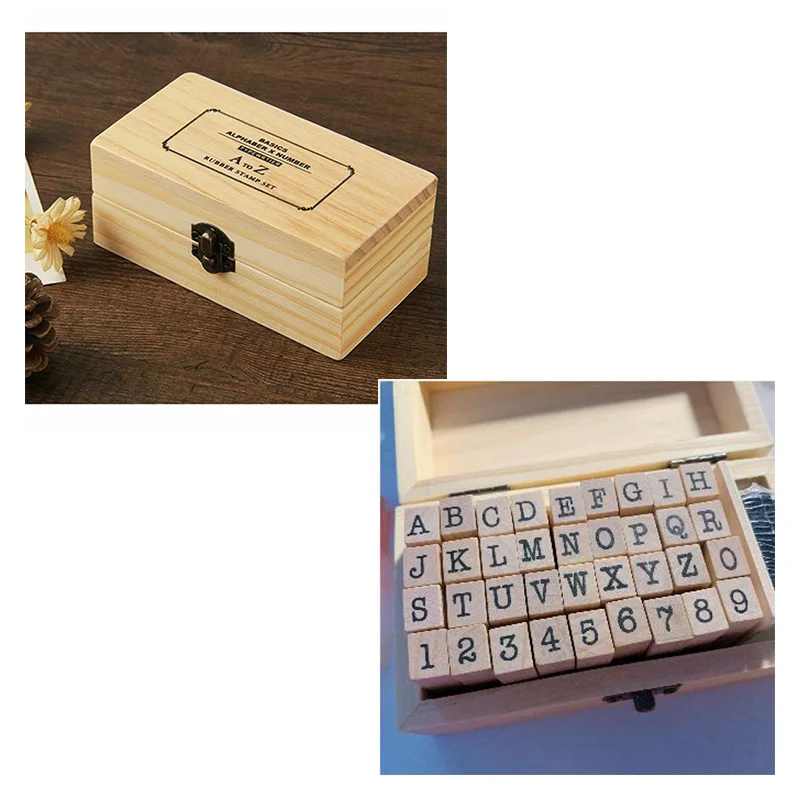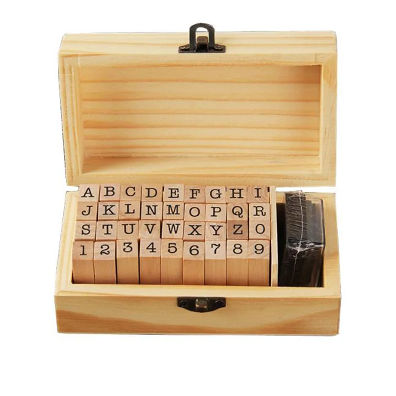 36 шт., набор цифровых букв, комбинированное уплотнение, базовый набор, пишущая машинка, шрифт, деревянная печать, буквенный A-Z, номер 0-9, классический подарочный набор