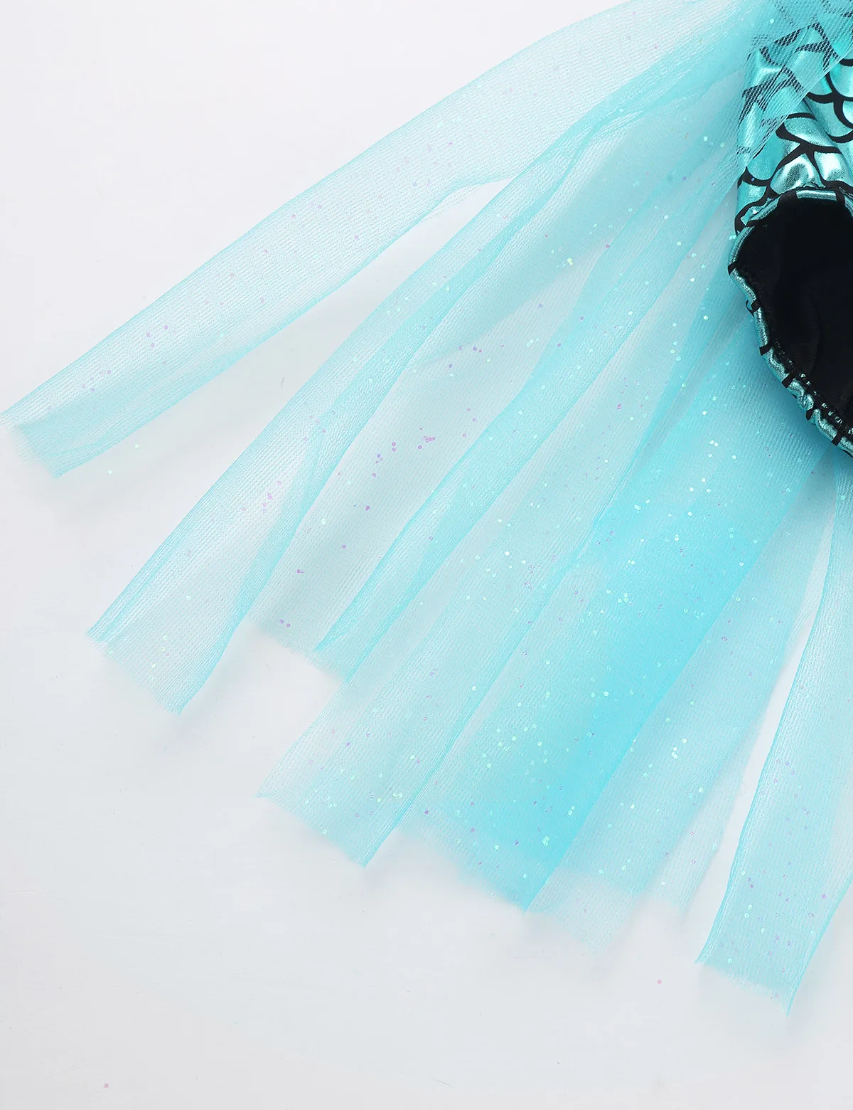 1 слой сетки с блестками прикреплен вокруг талии сзади. Удобная и дышащая ткань, быстро сохнет. Стильный Купальник для вашей девочки.