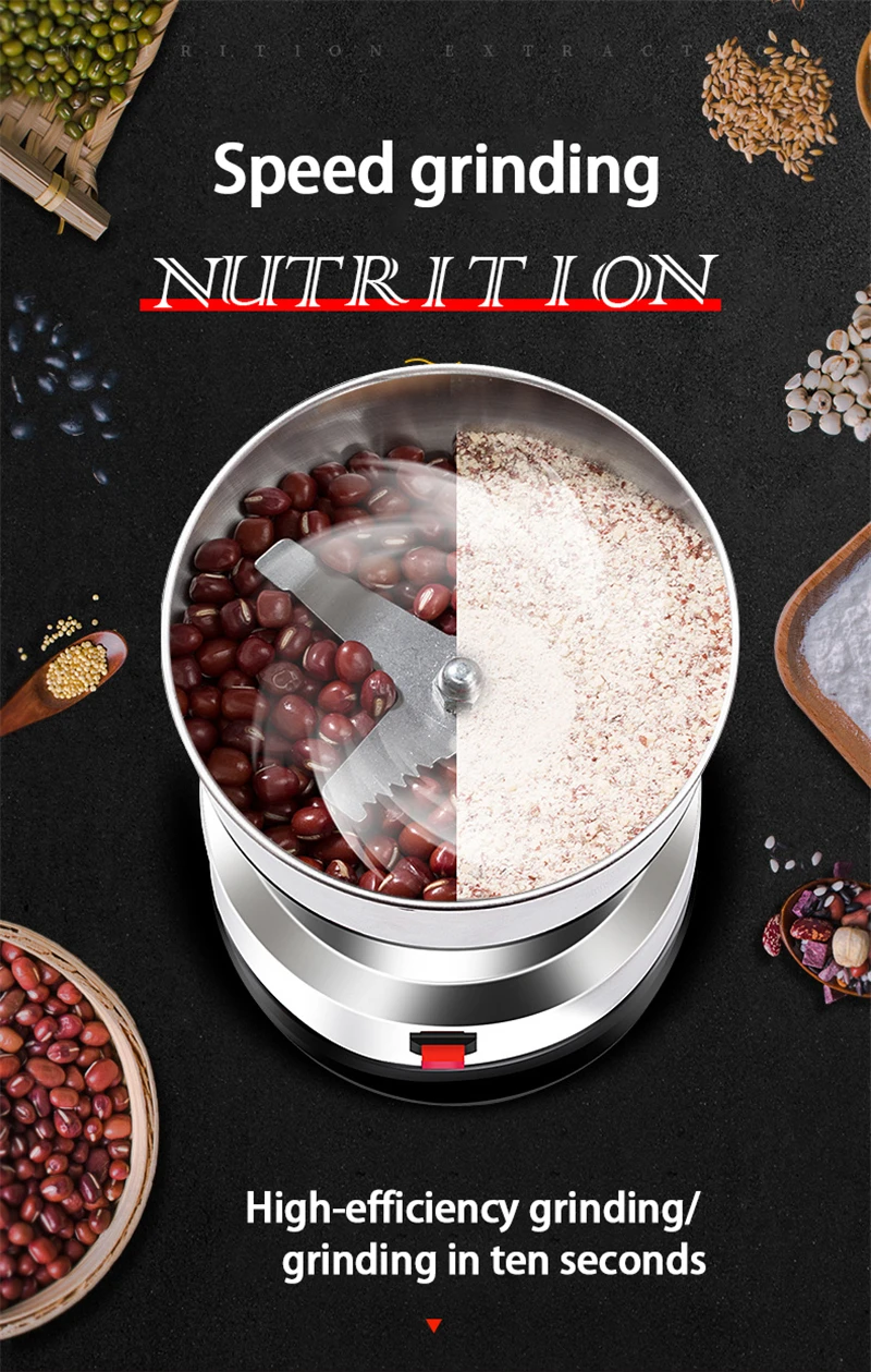 Электрическая кофемолка для кухни, зерновые орехи, бобы, специи, зерно, шлифовальный станок, многофункциональная домашняя шлифовальная машина