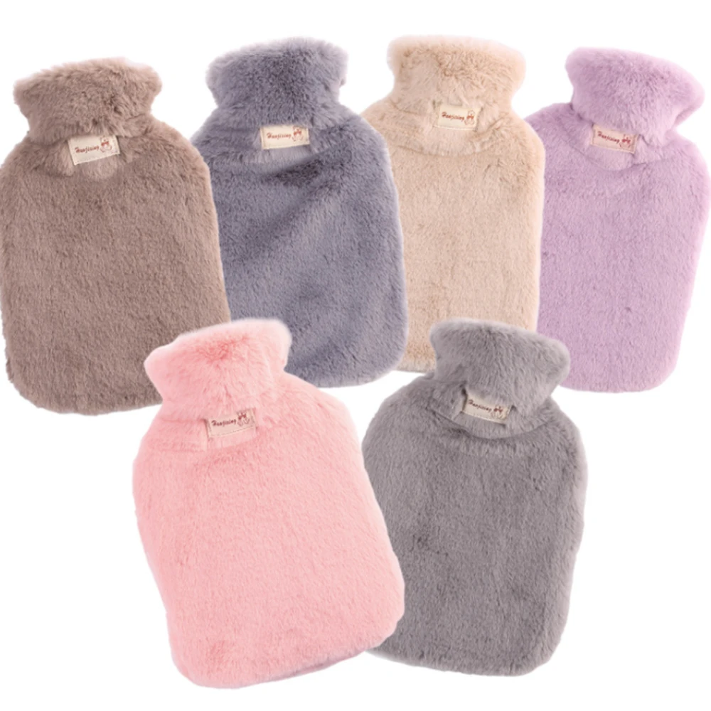Мягкий плюшевый чехол для бутылки с горячей водой резиновый пакет для холодного нагрева многоразовый портативный ручной подогреватель для облегчения боли зимний розовый фиолетовый