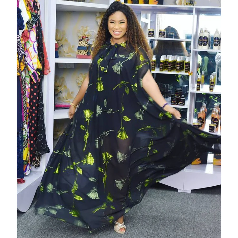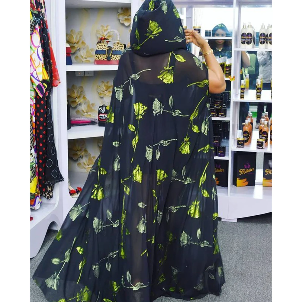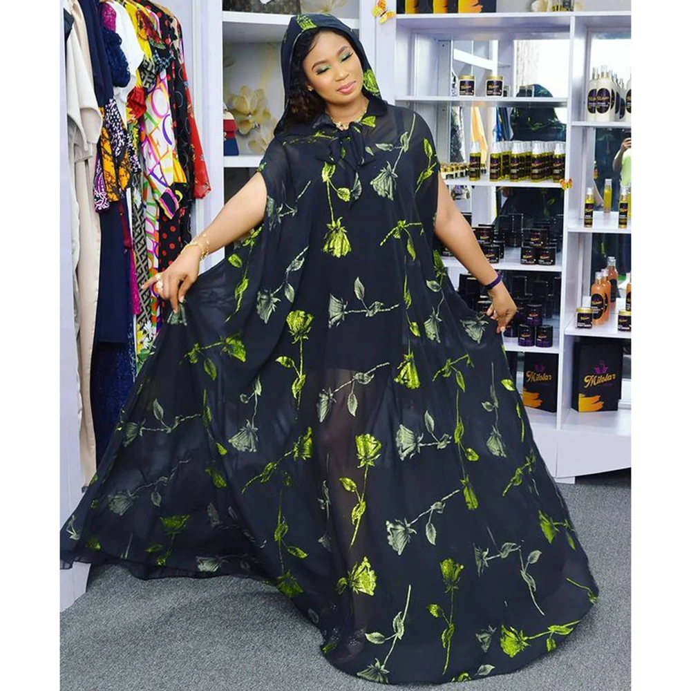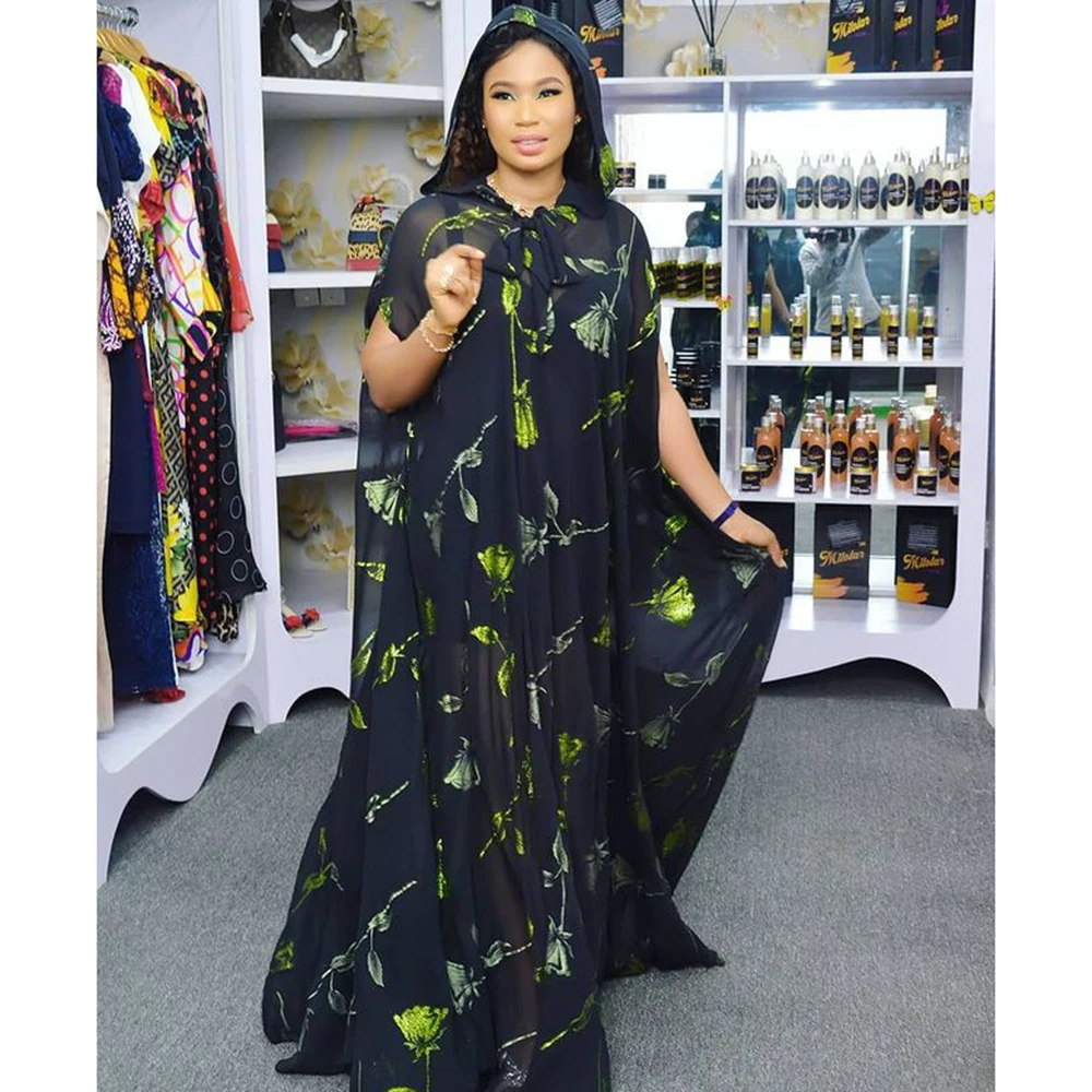 Новинка размера плюс, элегантное Африканское длинное платье макси с капюшоном, зеленое женское платье с принтом, Свободный пуловер, одежда в стиле ислам