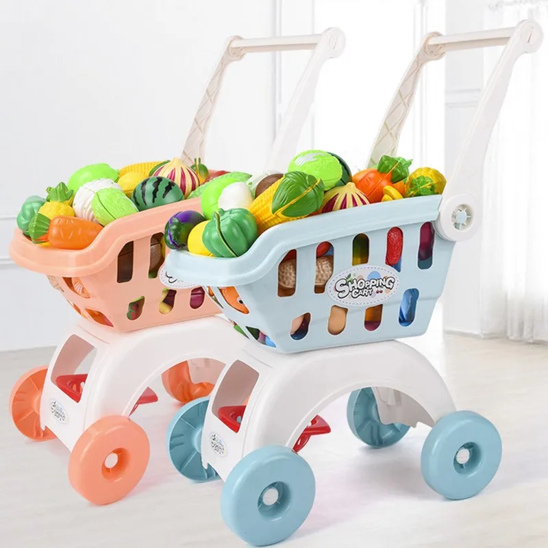 AMTOY 74 шт./компл. детская большая тележка для супермаркета Тележка для покупок толкающая Машина Корзина для игрушек имитация фруктов еда