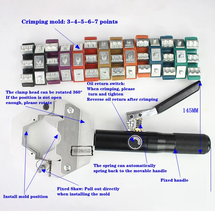 2. Новый патент в ожидании "HYDRA-KRIMP" делает Гофрирование колючей и бисером фитинги так же легко, как 1 - 2 - 3! 3.легкий ручной гидравлический пресс очень портативный и идеально подходит для магазинов и полевых приложений.