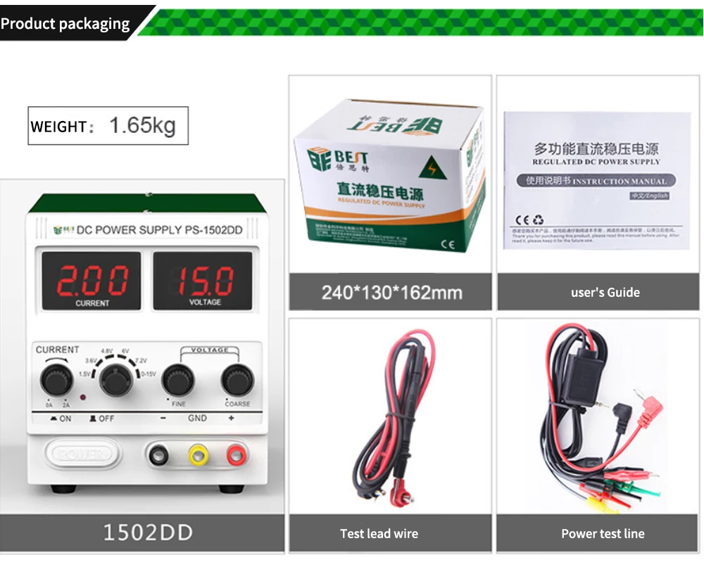 BST 1502DD цифровой дисплей DC Электропитание метр 15V 2A Регулируемый тест Мобильный телефон ремонт, блок питания источник питания