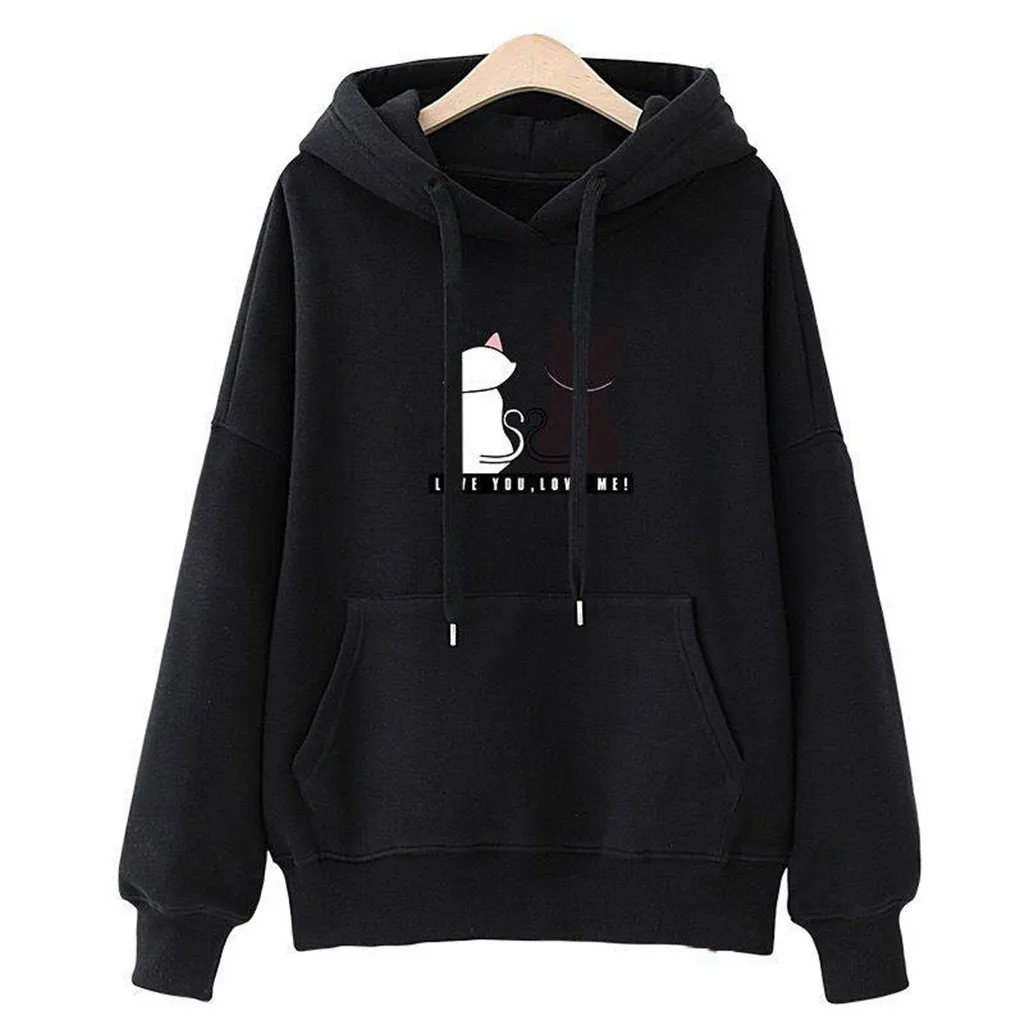 Женская толстовка с капюшоном, Повседневная зимняя женская толстовка с мешковатым котом, джемпер, пуловер, топы