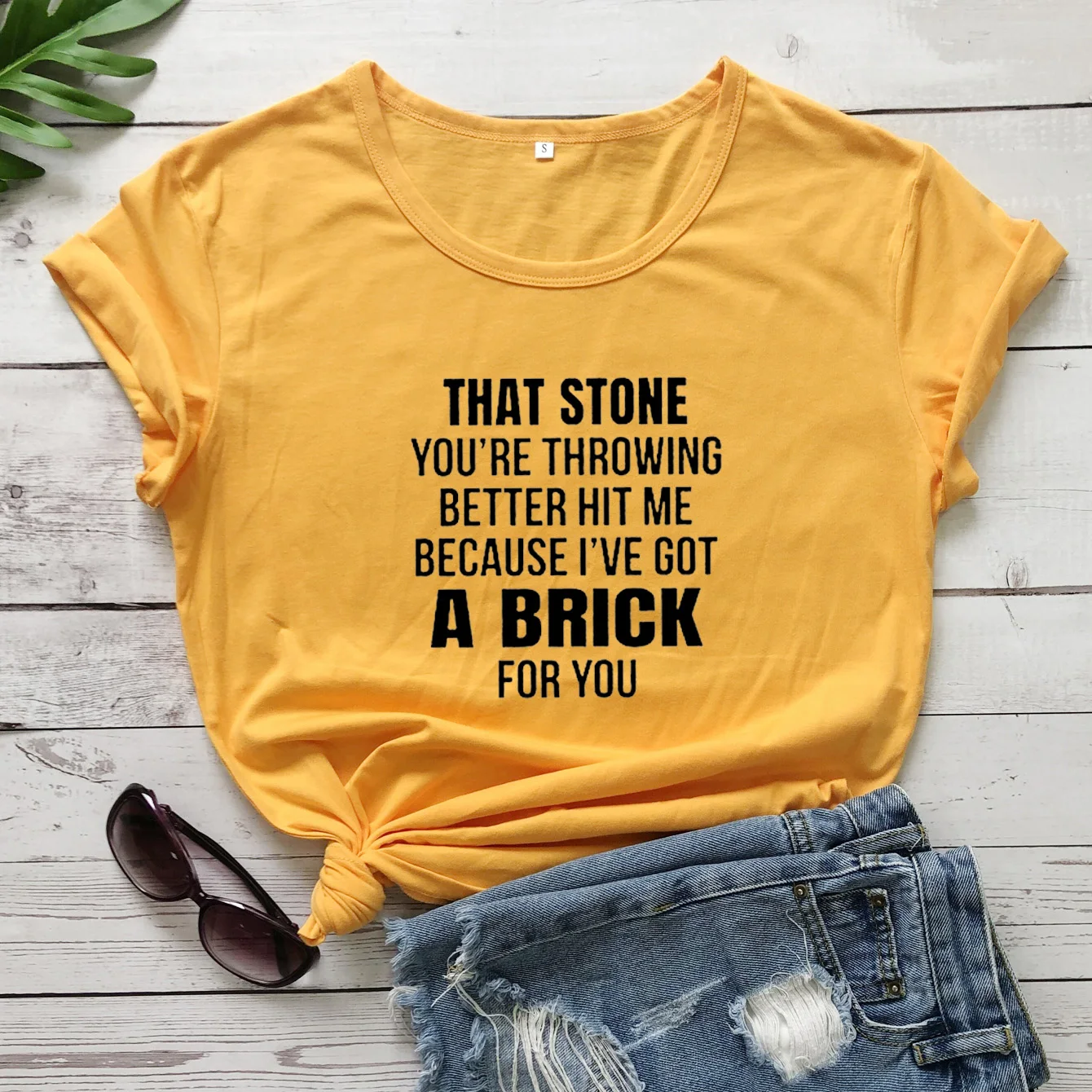 Женская футболка с надписью «I'm a Happy Go Lucky Ray of Sunshine», желтая Повседневная футболка с забавными рисункамиUSD 9,40/Шт.