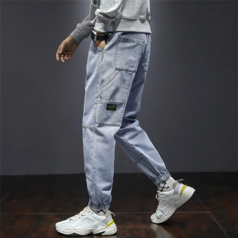 Мужские джинсы, новые модные штаны-шаровары, Осень-зима, уличная одежда, мужские свободные джинсовые брюки с карманами, джинсы Para Hombre