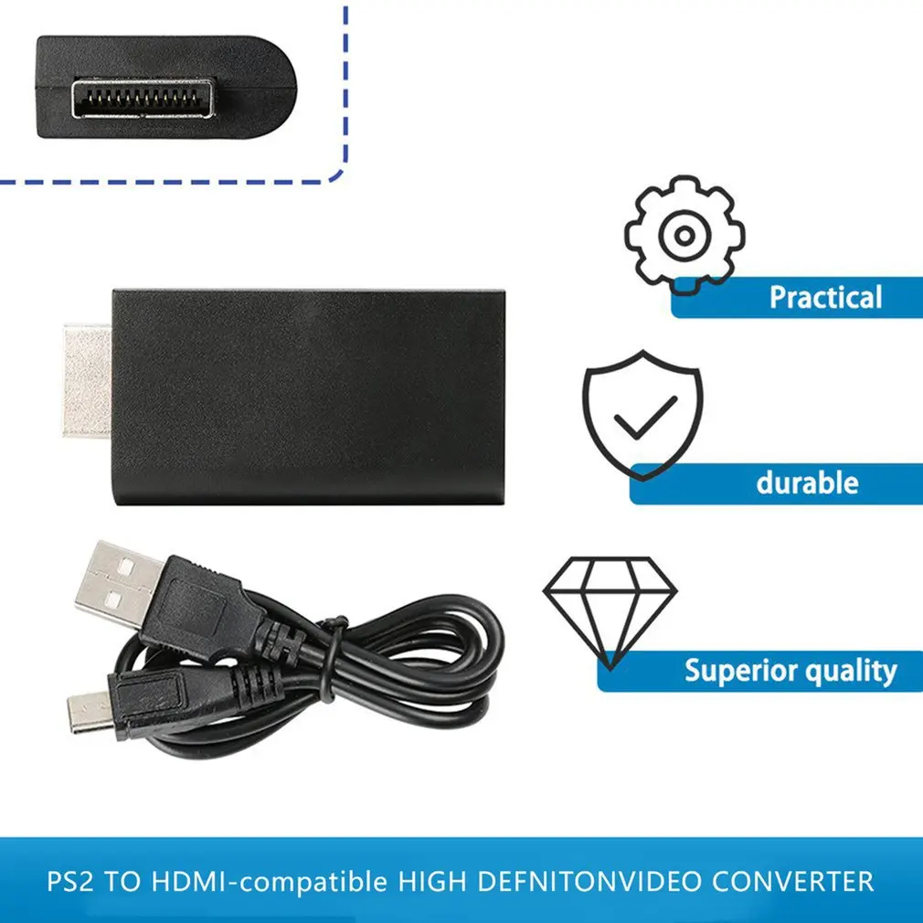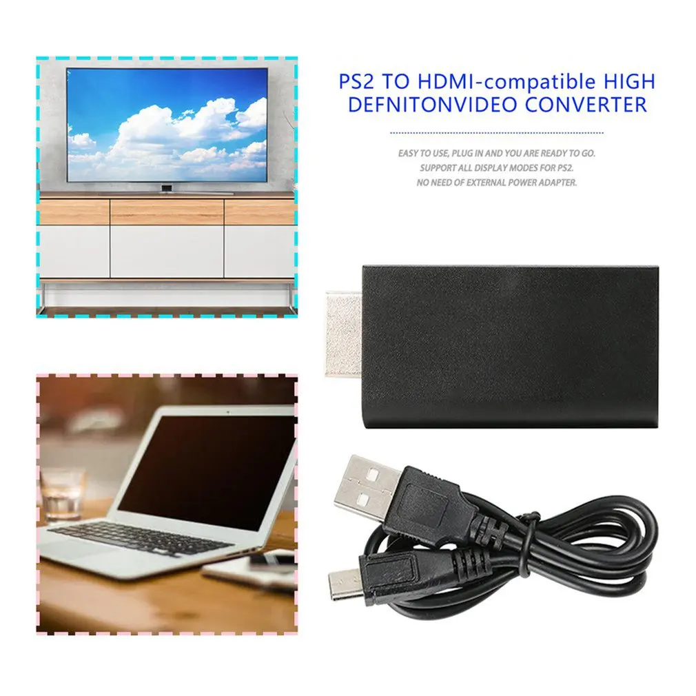 Черный HDMI-совместимый видео конвертер видео AV адаптер конвертер для HDTV дисплей устройства проектор PS2 поддержка Plug And Play