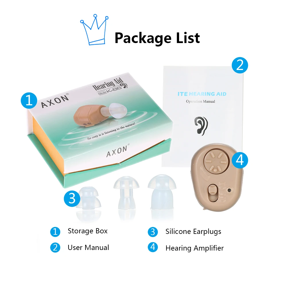 Усилитель слуха Axon предназначен для пожилых людей или людей с проблемами слуха. Усовершенствованная технология микропроцессора обеспечивает чистый звук и снижает уровень шума. Мы предлагаем 3 разных силиконовых беруши, которые лучше подходят для Ваших ушных каналов. Подходит для ежедневного прослушивания: просмотр фильмов, драмы, посещение встреч, занятий, чата и т. д.