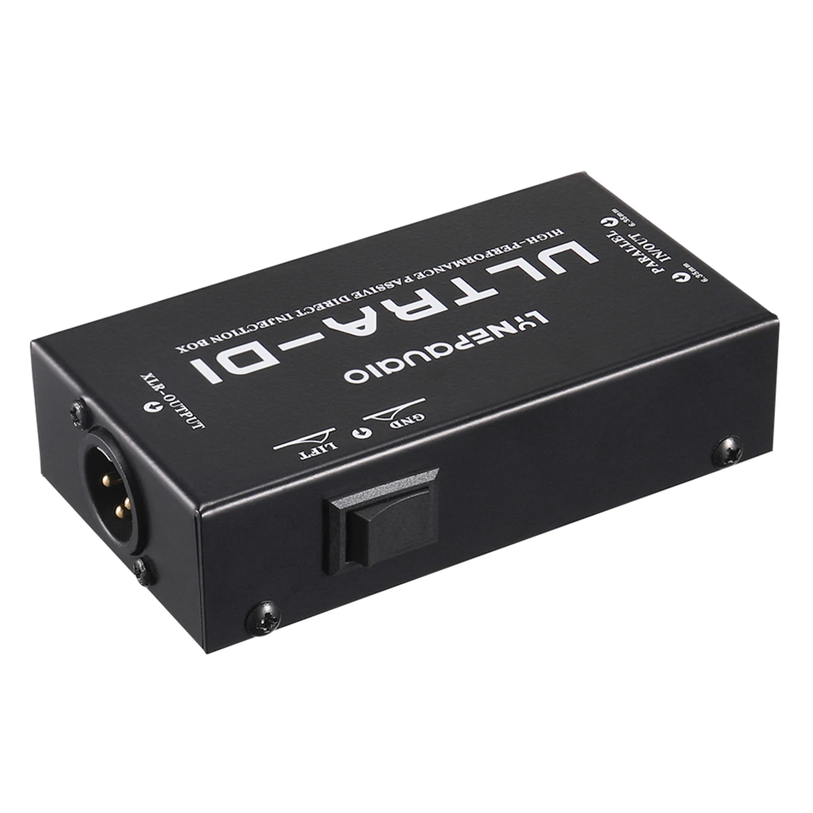 Компактная пассивная коробка прямого впрыска для преобразования высокого сопротивления, уровня линии и несимметричного выходного сигнала в низкое сопротивление, уровень микрофона и сбалансированный входной сигнал.