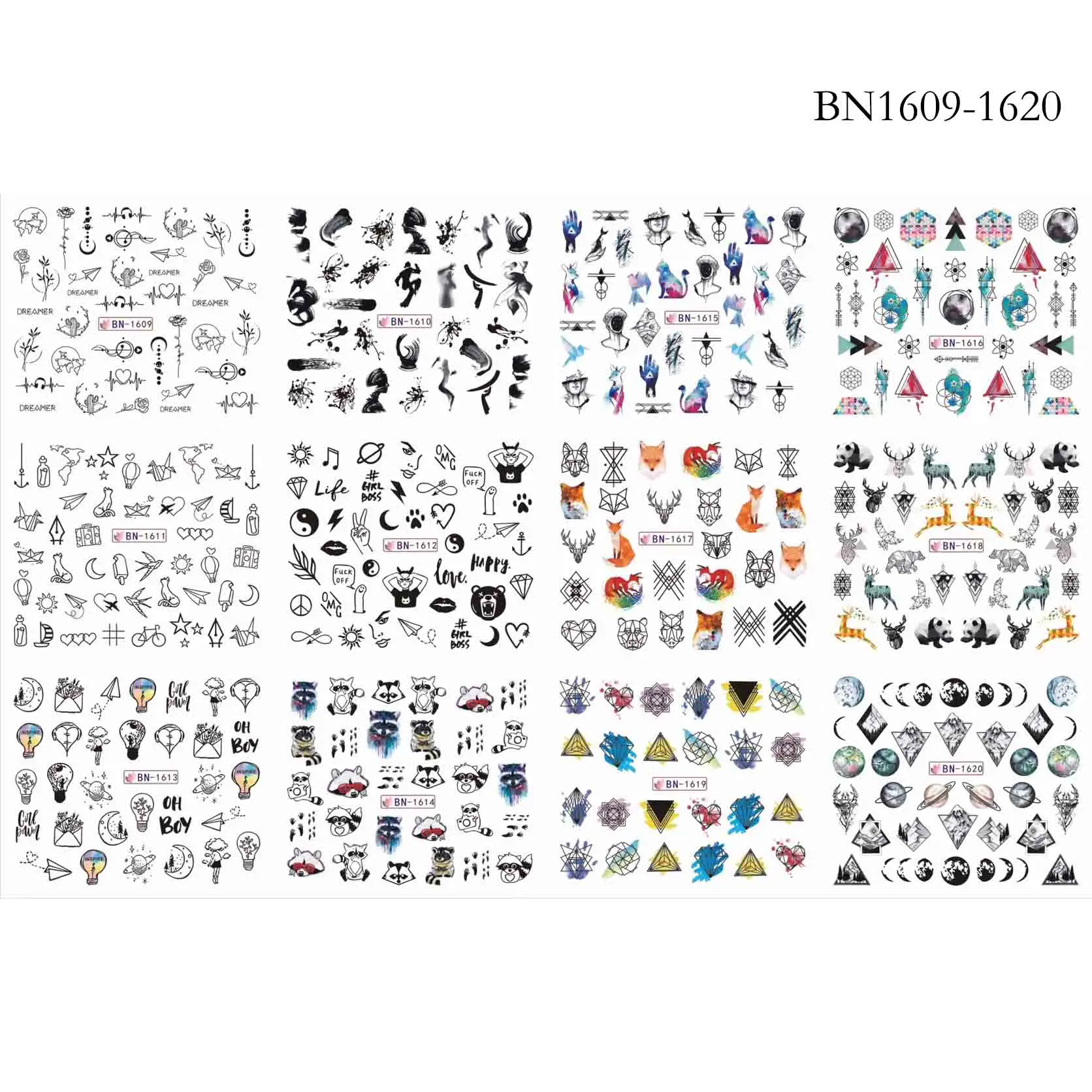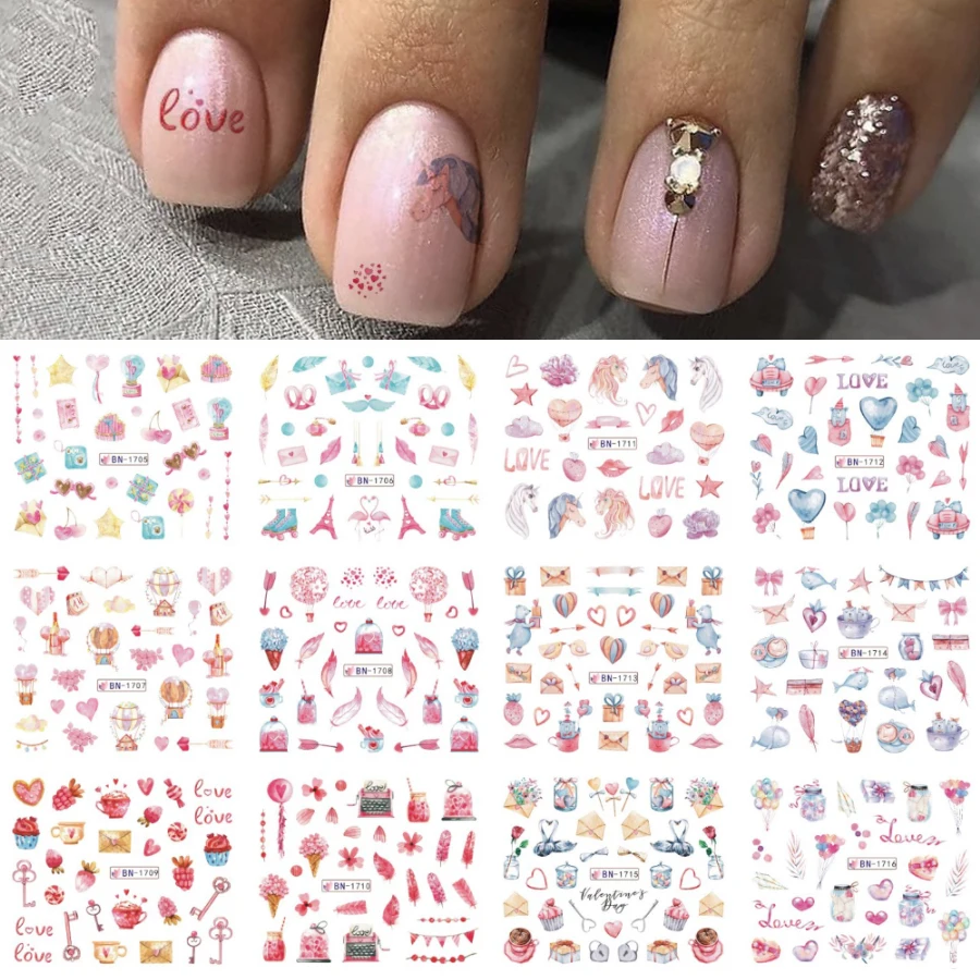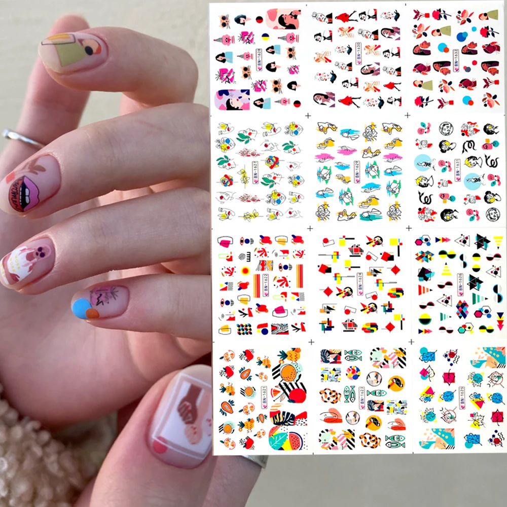 Упаковка: 12 видов конструкций/набор переводных наклеек для ногтей