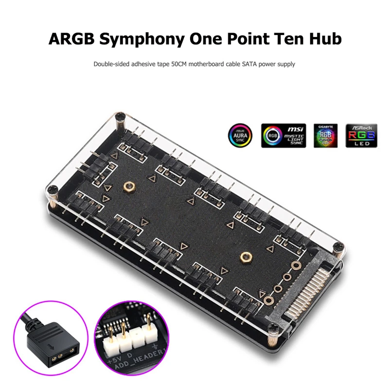 10 Порты RGB вентилятор хаб ПК настольный компьютер 5V 3PIN/12V 4PIN ARGB удлинитель сплиттер SATA Мощность адаптер для Gigabyte MSI ASUS