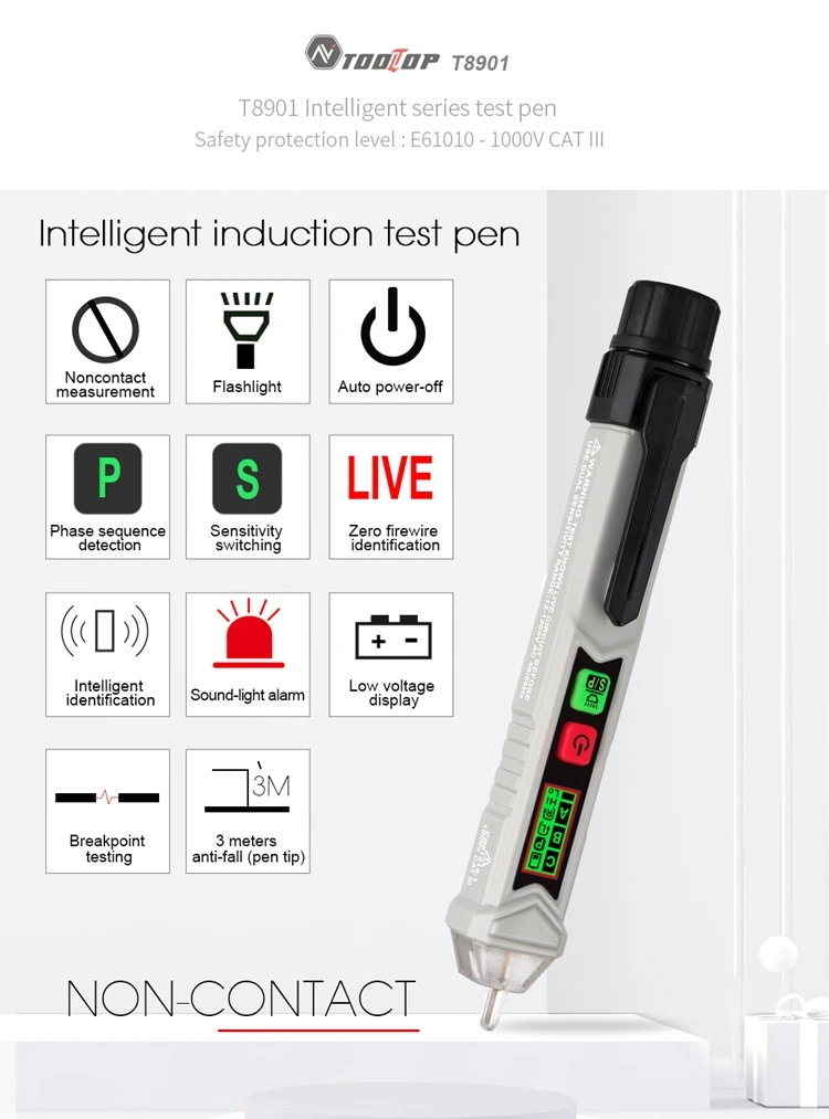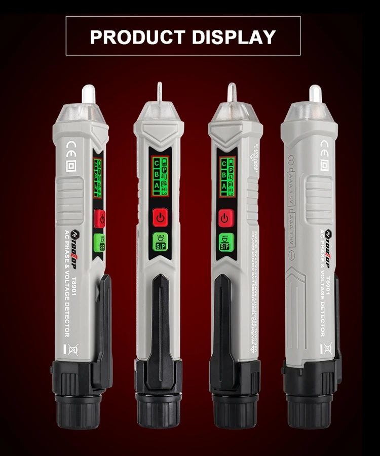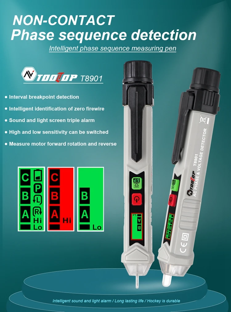 T8901 цифровое Обнаружение последовательности фаз Бесконтактное интеллектуальное измерение последовательности фаз нулевой огнеупорный провод ручка AC 12V ~ 1000V (50 ~ 60Hz)