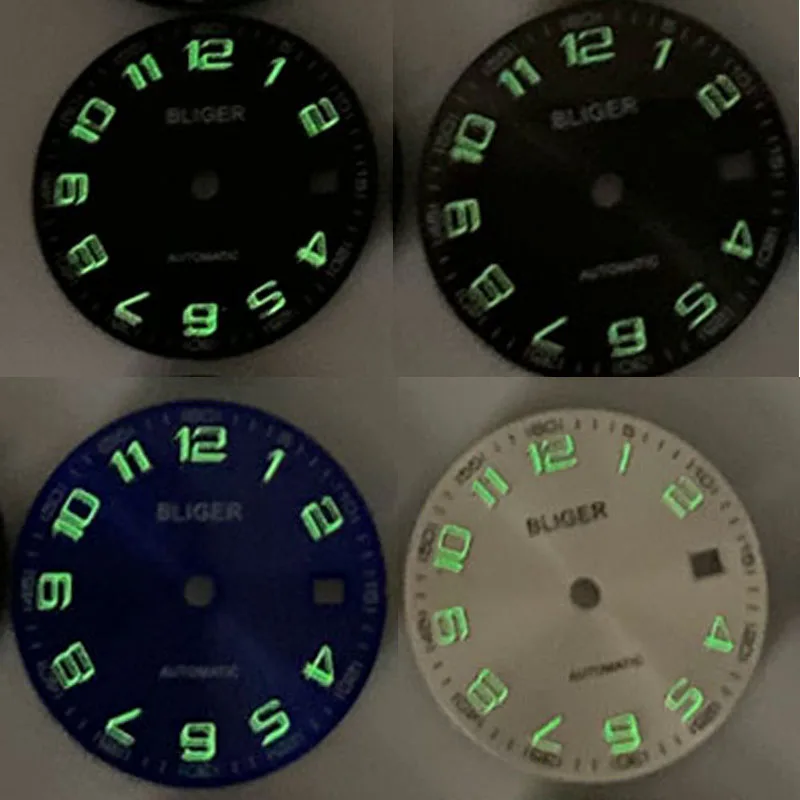 > Механизм: подходит для MIYOTA 8215 8205 ETA 2824 2836 MINGZHU 2813 автоматический механизм. > Диаметр циферблата: 29 мм с окошком даты > Черный/серый/синий/серебристый циферблат > Зеленый световой знаки