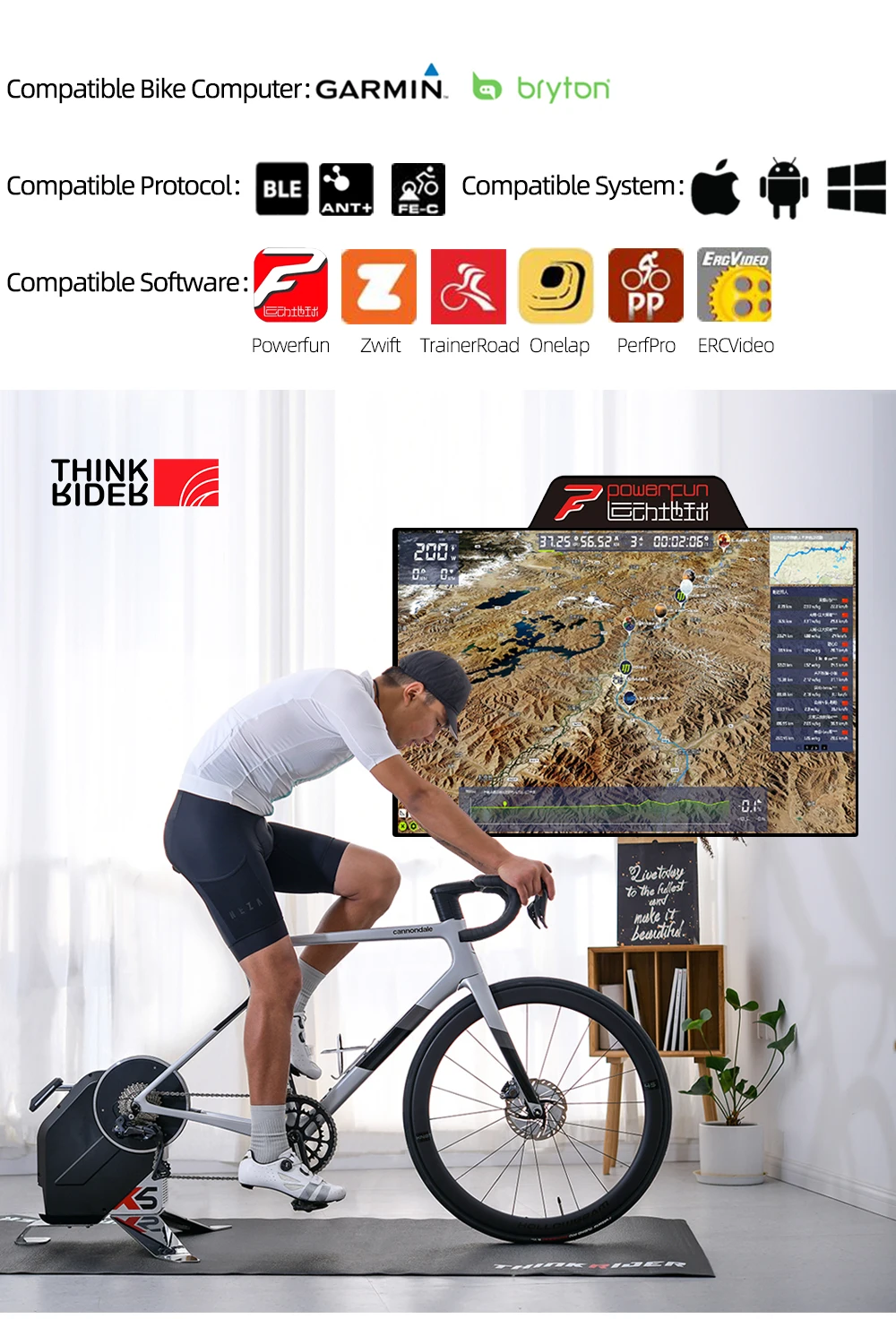 Он совместим со всеми видами велосипедного программного обеспечения, и вы также можете использовать бесплатную Powerfun, чтобы сделать вас ездить по классическому маршруту по всему миру. Велотренажер может автоматически регулировать сопротивление в соответствии с наклоном на карте.