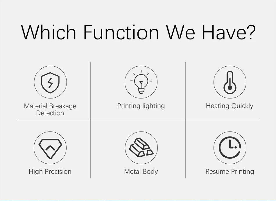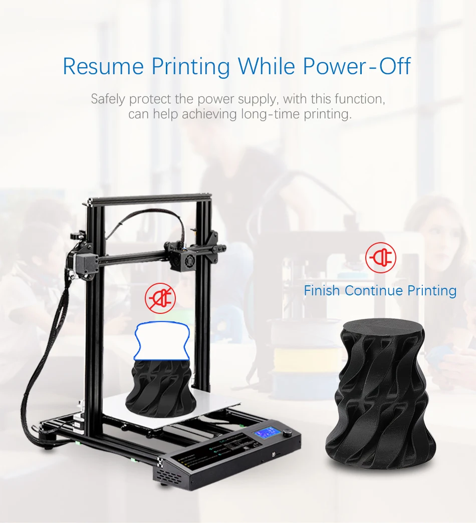 (1) обнаружение нити: автоматическая пауза, если нить иссякнет или сломается (2) восстановление потери энергии: один клик, чтобы продолжить последнюю печать от выключения питания. (3) Интеллектуальный 3D-принтер SUNLU имеет возможность продолжить печать даже после отключения питания или отключения. (4) большой объем сборки и хорошая Экономичность: 310x310 x400мм (5) Гарантия качества на срок службы SUNLU. Вся продукция SUNLU поставляется потребителю непосредственно от производителя, мы предоставляем 2 года гарантии и пожизненную техническую помощь. Если у вас возникли проблемы после продажи, пожалуйста, свяжитесь с нами.