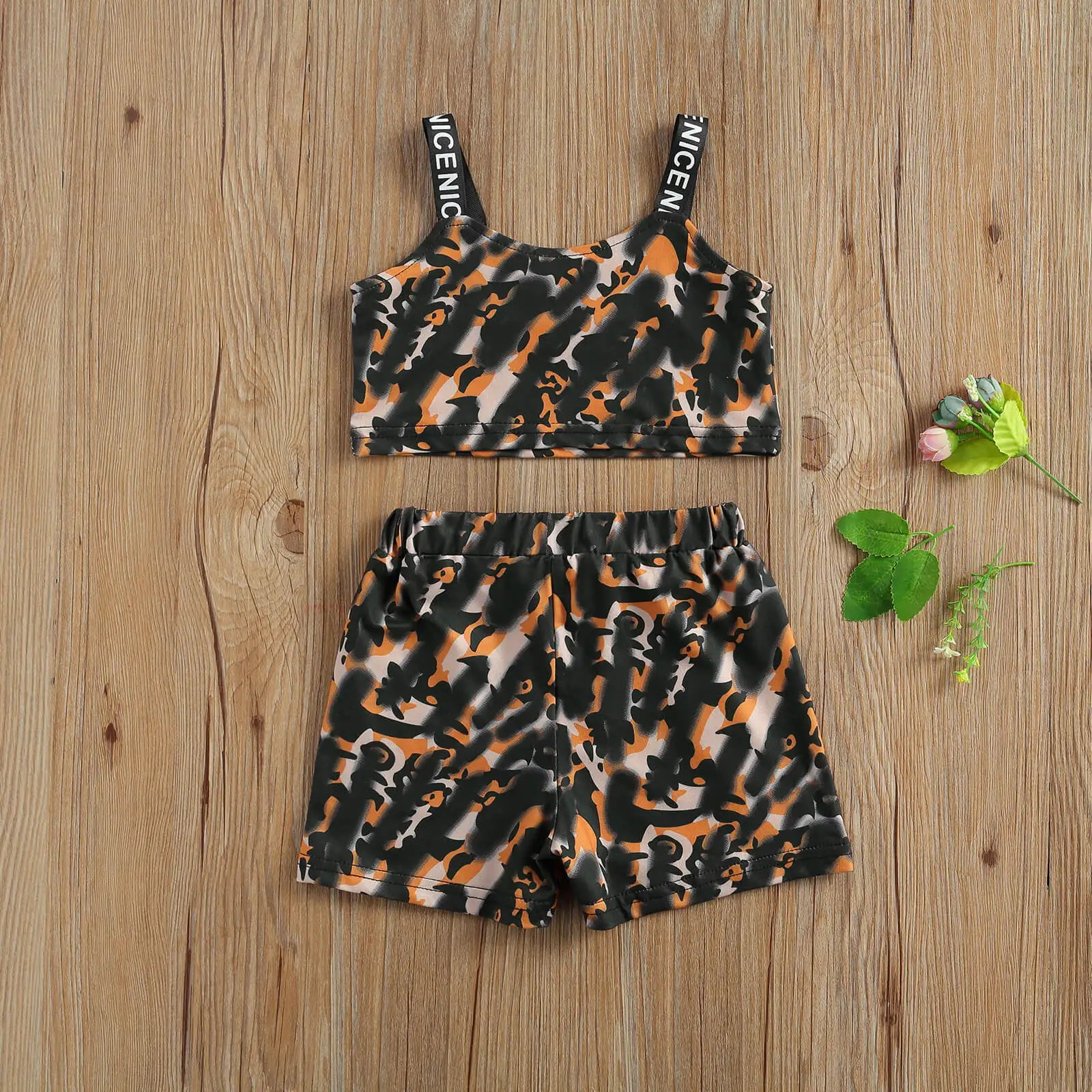 Леопардовый узор; Летняя одежда с буквенным принтом и эластичной резинкой на талии
