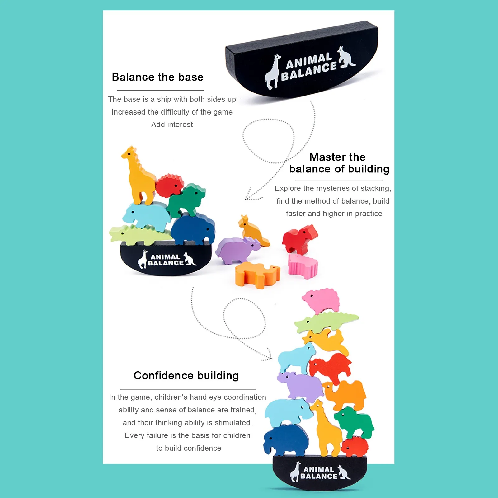 Деревянный животные пазл игровой набор игрушек Детский баланс тренировка Монтессори развивающие дошкольные балансирующие блоки Игровой набор для мальчиков и девочек