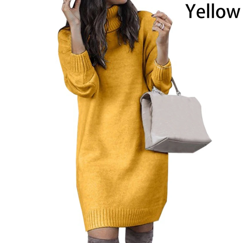Новинка, Женское Платье-Свитер оверсайз, однотонный пуловер с высоким воротом, вязаный свитер, уличная одежда, осень-зима, элегантная теплая женская одежда