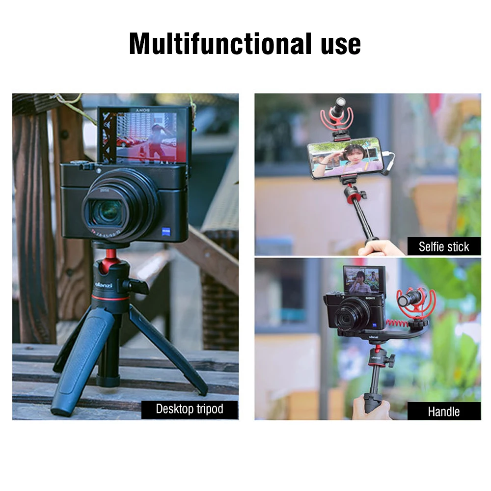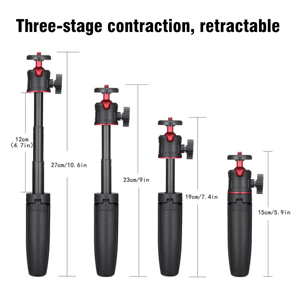 ♥Штатив-тренога Selfie Stick 2-в-1: он может использоваться в качестве мини-Настольный штатив или Телескопический монопод selfie stick, идеально подходит для selfie или vloging. ♥Стандартное 1/4 дюймовое винтовое крепление: стандартное 1/4 дюймовое винтовое крепление Совместимо с Sony RX100 VII, Canon G7X Mark III и другими беззеркальными камерами, а также с большинством зажимов для смартфонов. ♥Гибкая шариковая головка: Гибкая шариковая головка поддерживает вращение на 360 °, вы можете свободно регулировать угол съемки, очень удобно использовать. ♥Раздвижная конструкция: телескопическая палка с 3 секциями поддерживает максимальную длину использования до 27 см/10,6 дюйма, что позволяет получить более широкий диапазон съемки. ♥Легко носить с собой: компактный и легкий, всего 15 см длина складывания и 92 г Вес нетто, очень легко носить с собой.