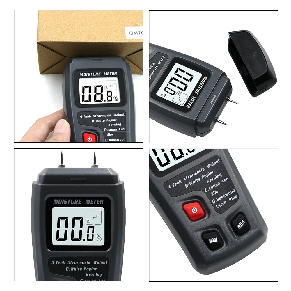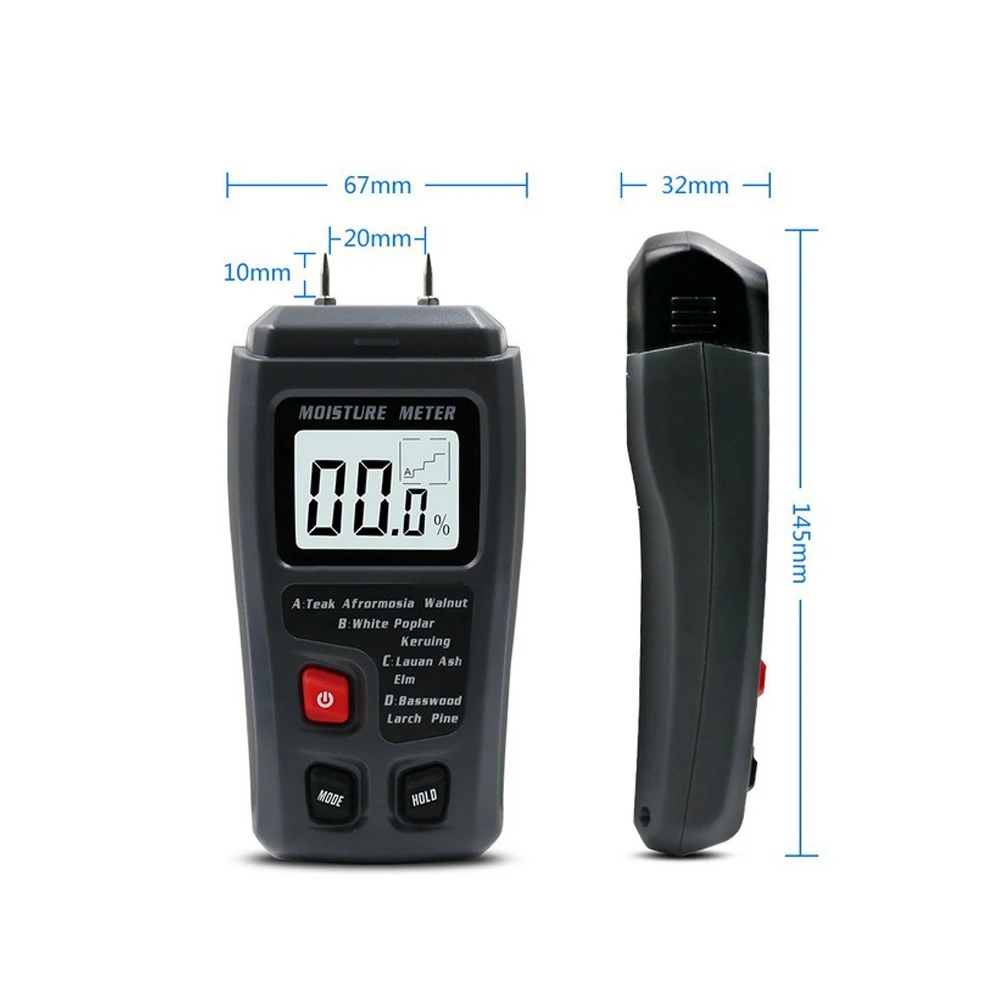 Точный измеритель древесины: 2 чувствительных электрода контактный цифровой измеритель влажности Диапазон измерения от 0 до 99.9%, Точность: ± 0.5%.1 руководство пользователя на английском языке.
