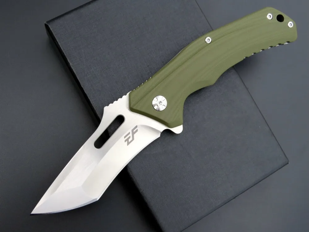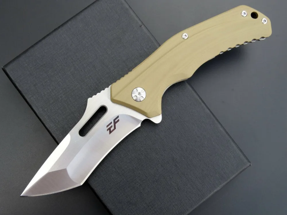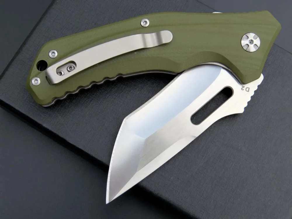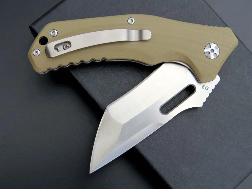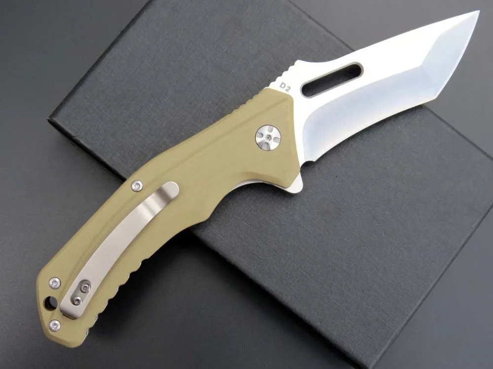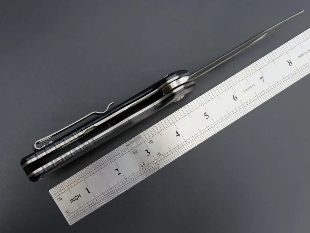 Полная длина: 209 мм Длина клинка: 9,5 см Ширина клинка: 2,1 мм Толщина клинка; 3,5 мм Твердость: 58-60HRC Материал ножа: D2 Материал ручки: G10 Система: стальные шарикоподшипники Вес нетто: 106 г