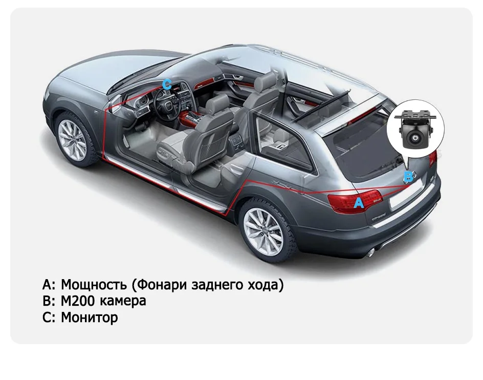 Компактные габариты камеры позволят вам закрепить её в любом удобном месте внутри салона автомобиля, а отсутствие необходимости в дополнительном питании избавит вас от лишних проводов и упростит установку. В комплект входит специальный кабель питания длинной 6 метров, что позволит удобно установить камеру в задней части салона автомобиля.