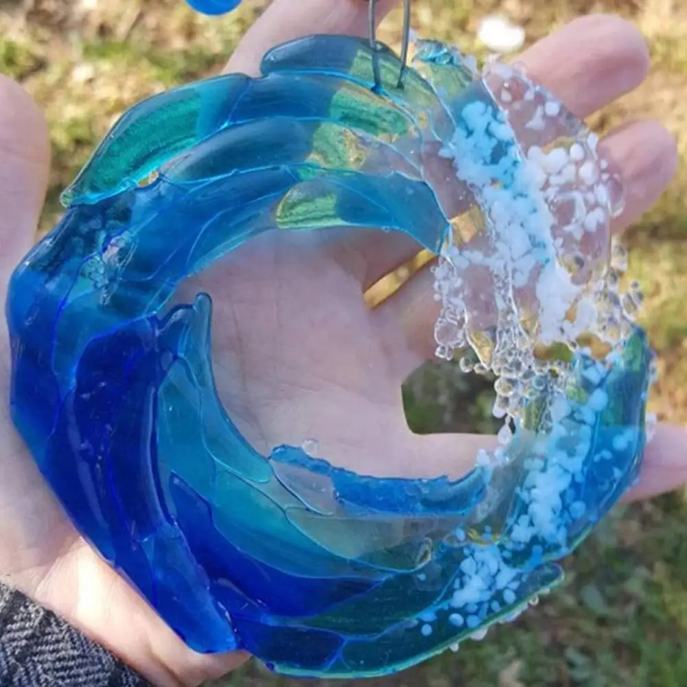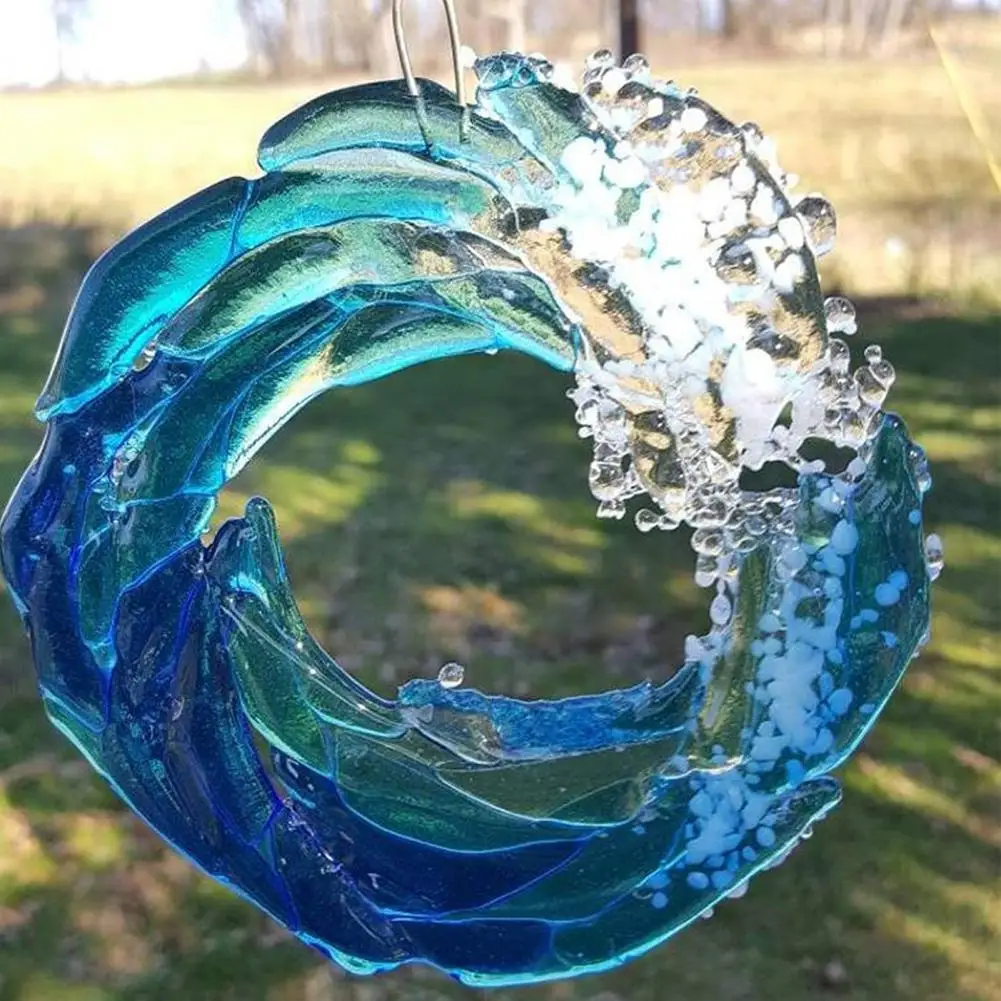 Этот уникальный предмет искусства изображает разбивающуюся волну океана в бирюзовом, голубом и белом стекле, что делает его более привлекательным.