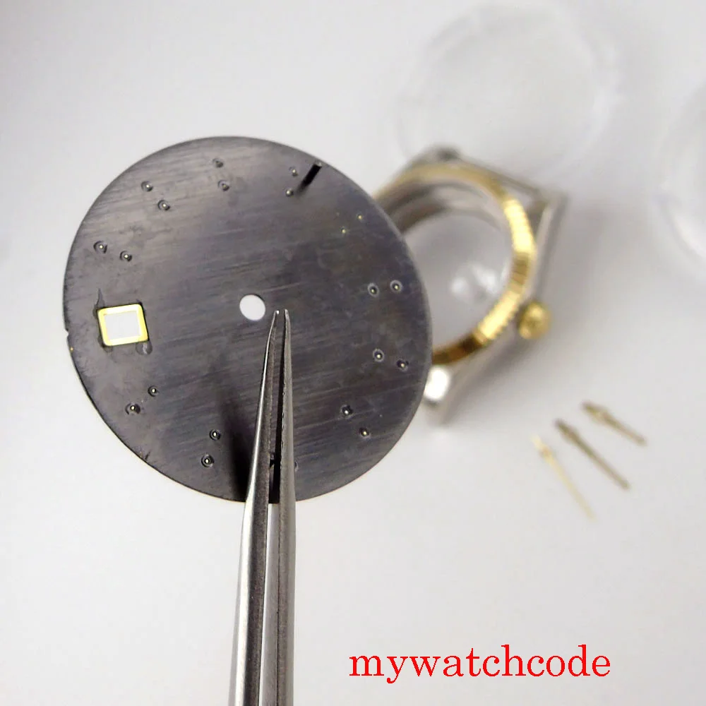 > Механизм чехол подходит MIYOTA 8215 821A 8205 ,ETA2836 2824 mingzhu 2813 автоматический механизм > Материал корпуса: твердый позолоченный корпус из нержавеющей стали 316L > Диаметр корпуса: 36 мм без короны > Толщина корпуса: 12,7 мм > Ремешок: 20 мм ширина ремешка > Корпус подходит для циферблата 28 мм-29 мм > Стекло: сапфировое стекло > Диаметр циферблата: 28,8 мм > Размер руки: 13 мм x 12 мм x 8 мм (все измерения от центра отверстия до конца) > Включает: корпус 36 мм. Задняя крышка, корона, крепление на подушку, резиновое уплотнение, 2 пружинных стержня.
