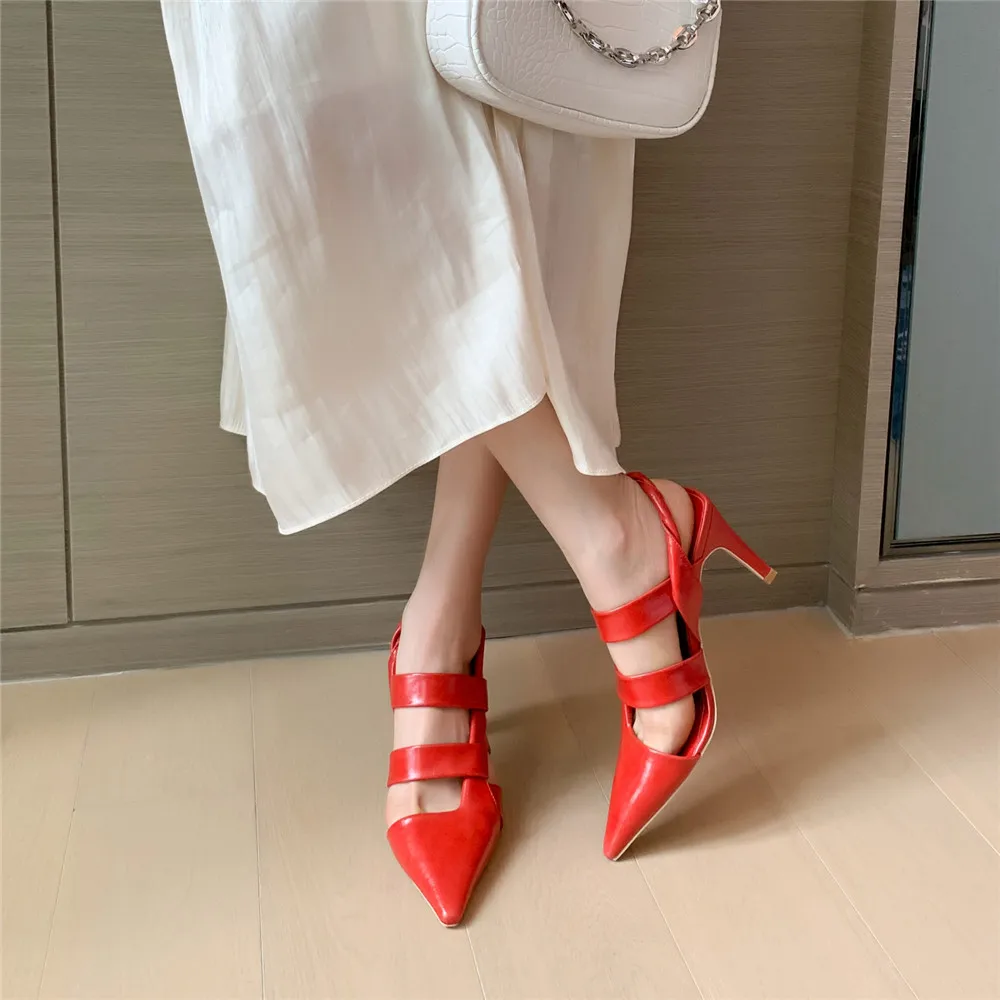 MILI-MIYA; Модные дизайнерские женские босоножки из микрофибры; Пикантные модельные туфли на толстом каблуке с острым носком и ремешком на пятке; Летняя обувь для вечеринок; Размеры 34-40
