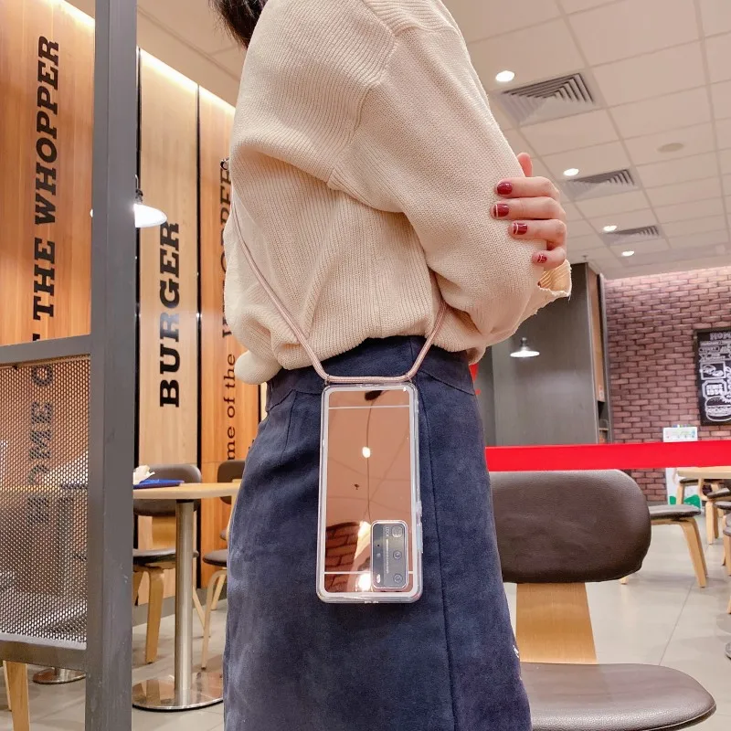 Зеркальный чехол на ремешке для Samsung Galaxy S21 Plus S20 FE Note 20 Ultra M51 A51 A71 A31 Кроссбоди Ремешок Ожерелье противоударный чехол