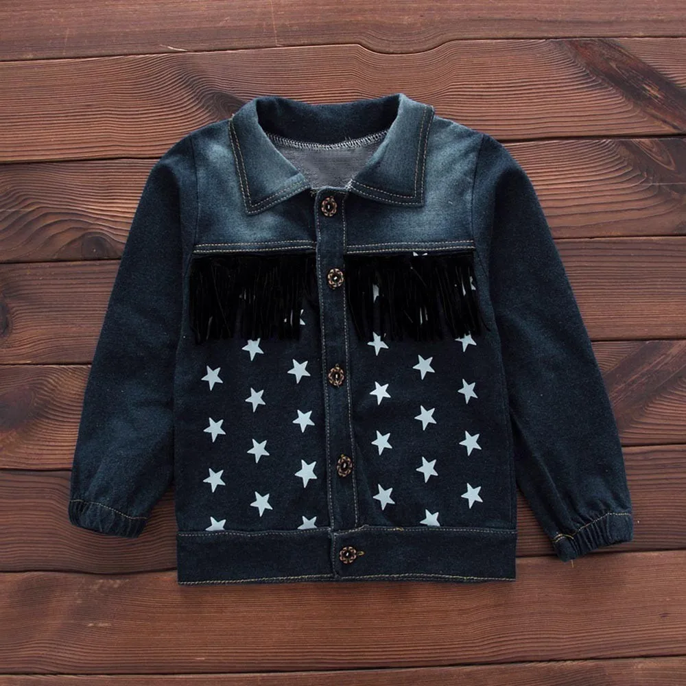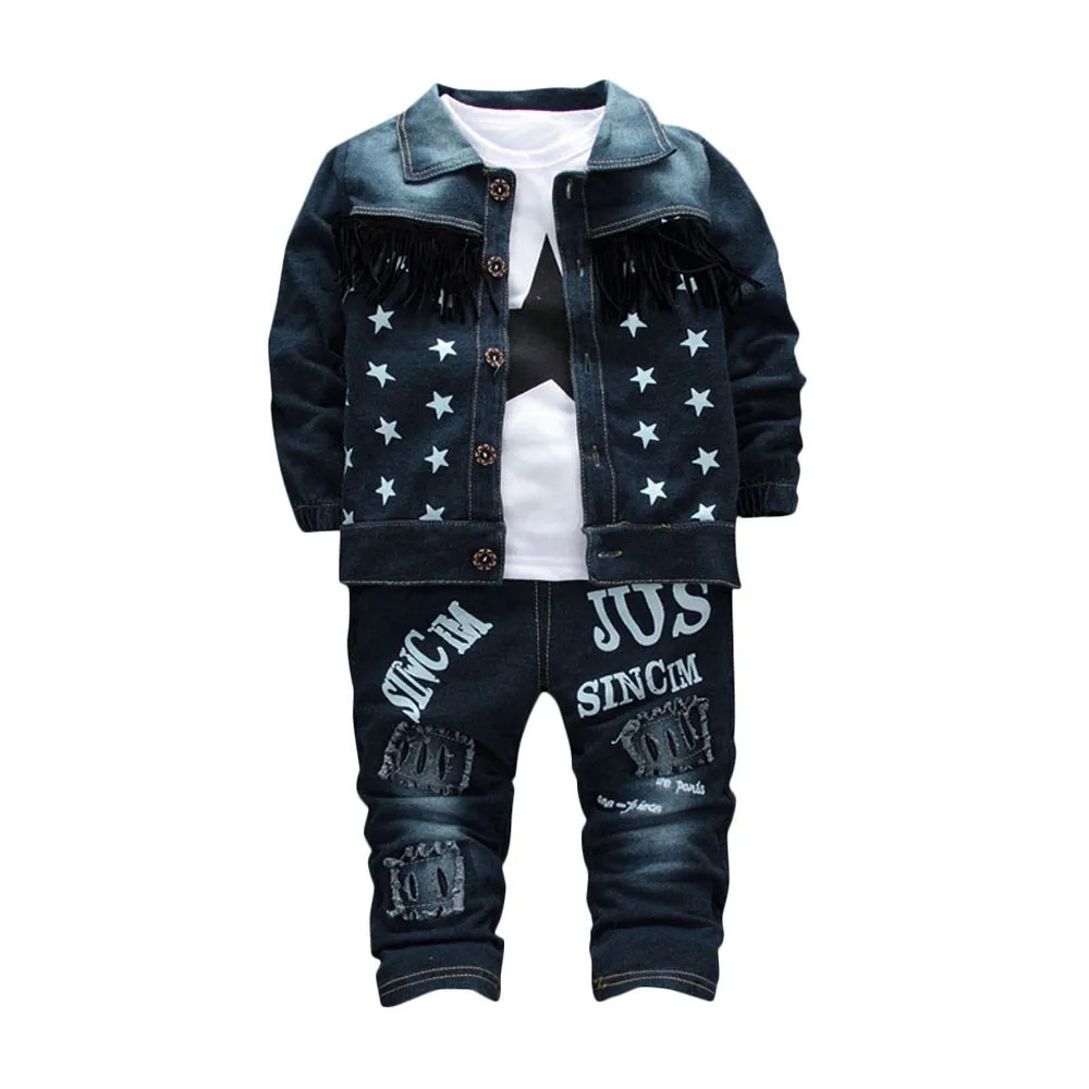 Младенец BAby Детское джинсовое пальто с надписью для мальчиков и девочек топы и штаны комплект одежды из 3 предметов