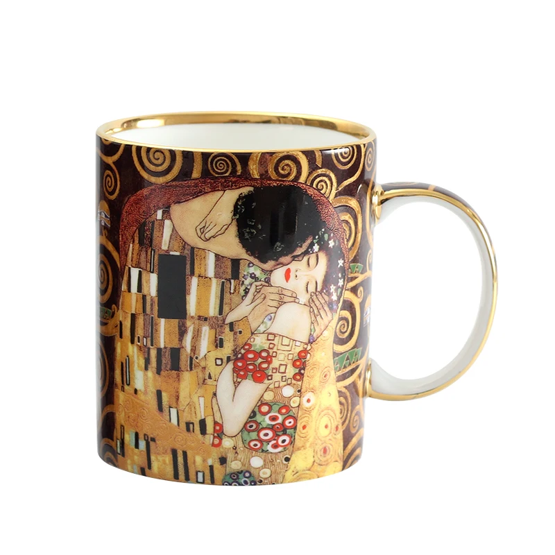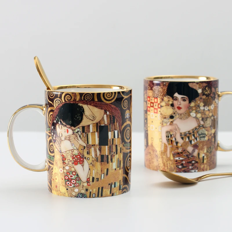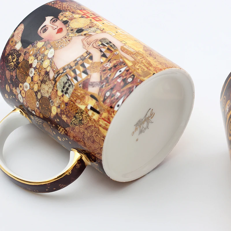 Винтажные кофейные кружки из костяного фарфора с рисунком Климта