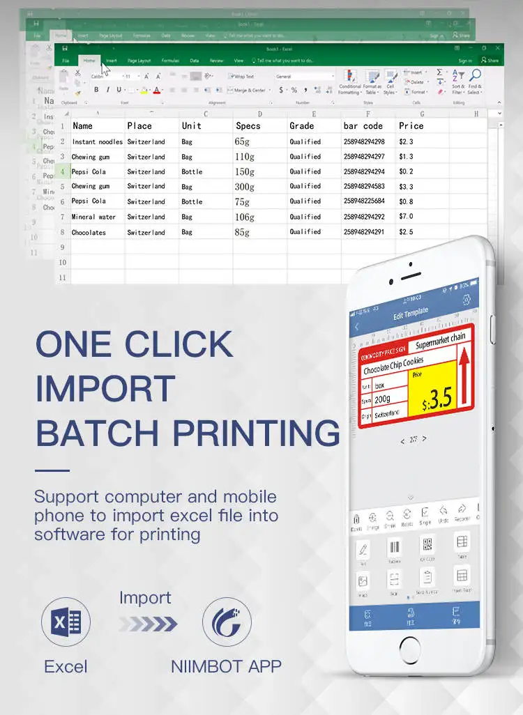 【Удобный для жизни 】: широко используется в супермаркетах, магазинах одежды и ювелирных изделий, индустрии связи для печати этикеток, цен, веса, даты, имени и т. д. Это ваш Помощник по работе, чтобы сделать вашу работу более эффективной. 【Подключение: Поддержка беспроводного подключения BT 4,0, нет необходимости загружать драйвер, совместим со смартфонами Android и iOS. Пожалуйста, следуйте инструкциям пользователя, чтобы загрузить относительное приложение на свой смартфон. Он также поддерживает подключение печати с компьютерами. 【 Тепловая Печать 】: Встроенный литиевый аккумулятор большой емкости 2200 мАч, работающий при низком уровне шума, принтер использует технологию термопечати, чернильный картридж не нужен при использовании, низкая стоимость эксплуатации. Поддержка этикеток шириной 20-75 мм. 【Бесплатная печать этикеток 】: печать этикеток более бесплатна, поддержка функции импорта excel, горизонтальная версия, вертикальная версия, время, 1D/2D штрих-код и печать стола, сканирование штрих-кодов, распознавание изображений и голоса, И т. д. Приложение имеет много банка материалов, обогатит ваше создание этикеток. 【Портативный и легкий вес 】: Изготовлен из высококачественного АБС-материала, легко брать в любом месте. Вы можете печатать в любое время и в любом месте при успешном подключении. 【Богатый функционал: приложение имеет большое количество шаблонов, одежды, ювелирных изделий, мамы и ребенка и супермаркетов, поэтому вам не нужно беспокоиться о дизайне. Он также поддерживает непрерывную печать.