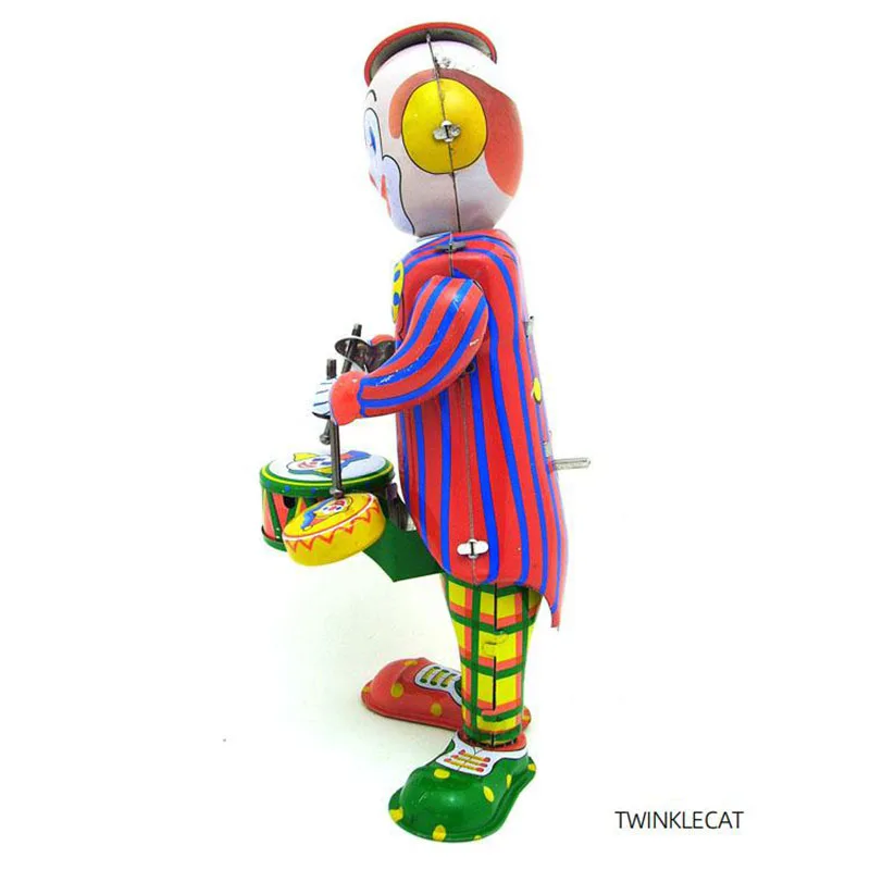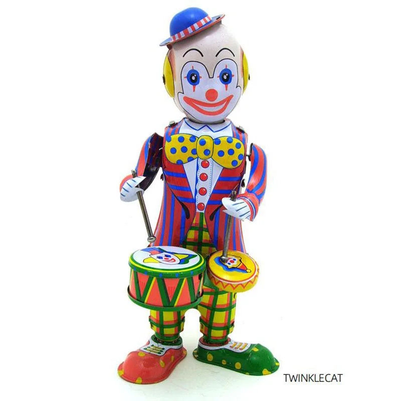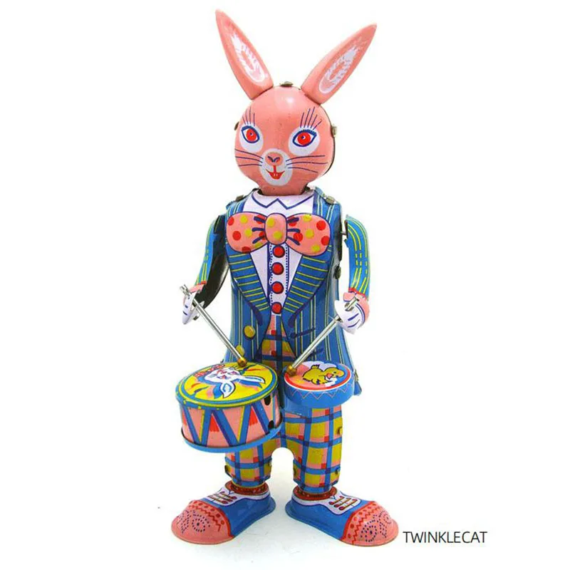 Clown Drumming Rabbit Tin Toy 21cm Childhood Clockwork Winder Vintage Handmade Collection Home Action Figure Metal Wind Up Toys