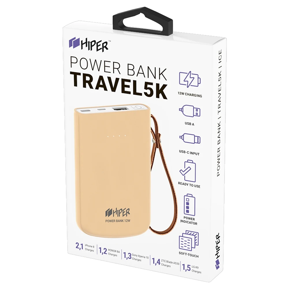 Портативный аккумулятор HIPER Travel однозначно станет одним из ваших лучших приобретений для поездок. При емкости 5000 мАч он позволяет пополнять ресурс смартфонов и планшетов, оснащенных разъемами USB Type-C и USB. Так как в его конструкции предусмотрено сразу 3 интерфейса USB Type-C, micro USB и USB, одновременно к нему можно подключать до 3 мобильных устройств. Мягкое прорезиненное покрытие делает его удобным и приятным для удержания в руках.