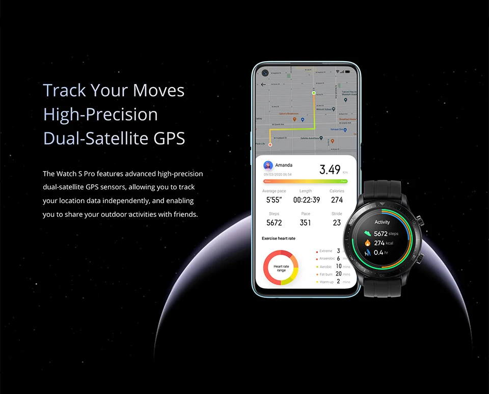 Часы S Pro оснащены передовыми высокоточными двухспутниковыми gps-датчиками, что позволяет отслеживать данные о местоположении самостоятельно и позволяет вам делиться своими видами активного отдыха с друзьями.