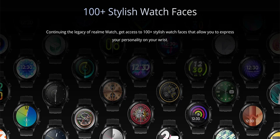 Продолжая использование часов realme, получите доступ к 100 стильным циферблатам, которые позволят вам выразить свою индивидуальность на запястье.
