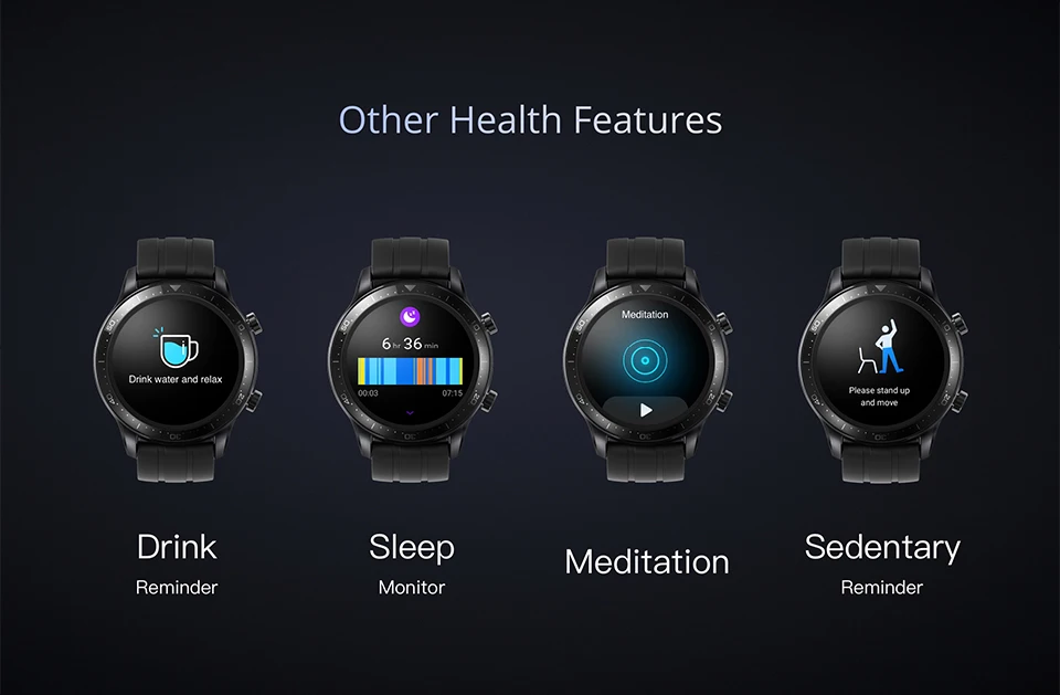 Напоминание о напитке; Монитор сна, медитация, напоминание о сидячем положении